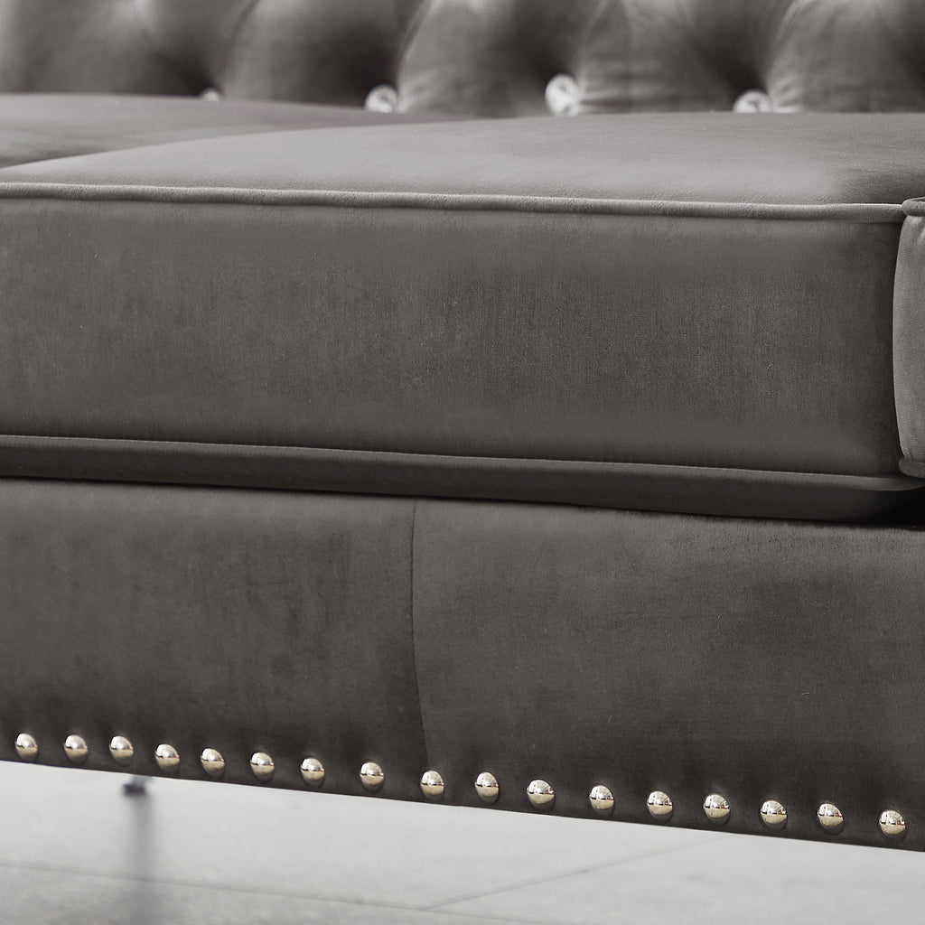 82.3" Width Modern Velvet Sofa Jeweled Buttons Tufted Square Arm Couch Grey,2 Pillows Included
