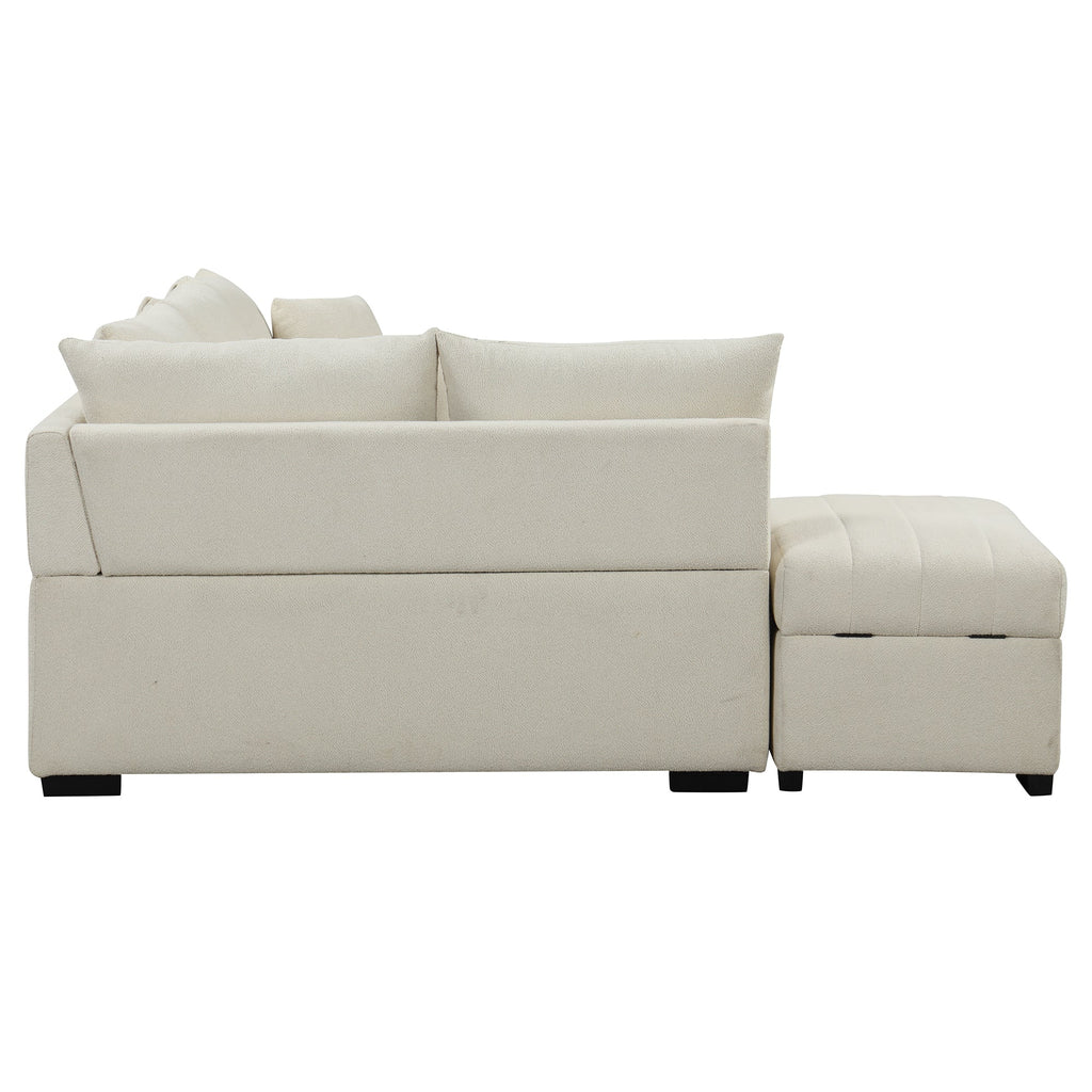 - Sectional Pull Out Sofa Bed - This L-shaped sofa features a pull-out bed that quickly converts into a guest bed for lounging with the assistance of two hand straps and smooth wheels. It is very convenient for visiting family and friends.