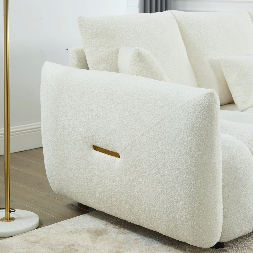 - The sofa is designed with smooth and clean lines, giving it a modern minimalist feel. The modern sofa is designed with teddy velvet material, which is comfortable to the touch and easy to care for.