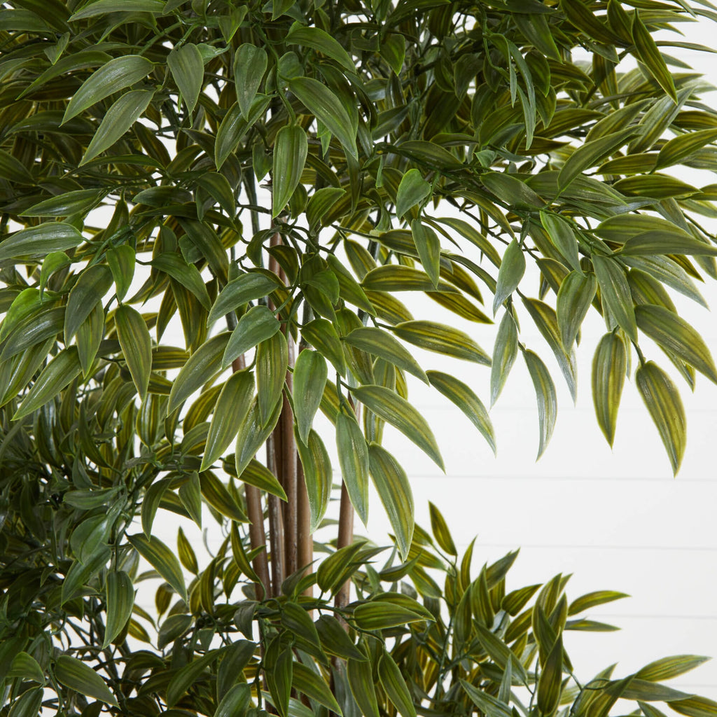 Brighten up any room with this artificial ruscus tree made up of verdant little leaves designed from the finest materials. Incredibly lifelike, it stands 82” high from its accompanying planter nestled with natural moss. Outdoor-safe, you can display it inside or outside without fear or wilt or discoloration.