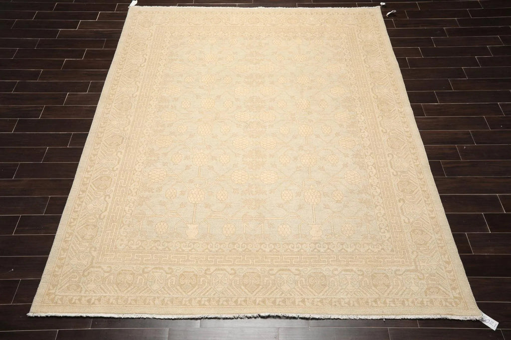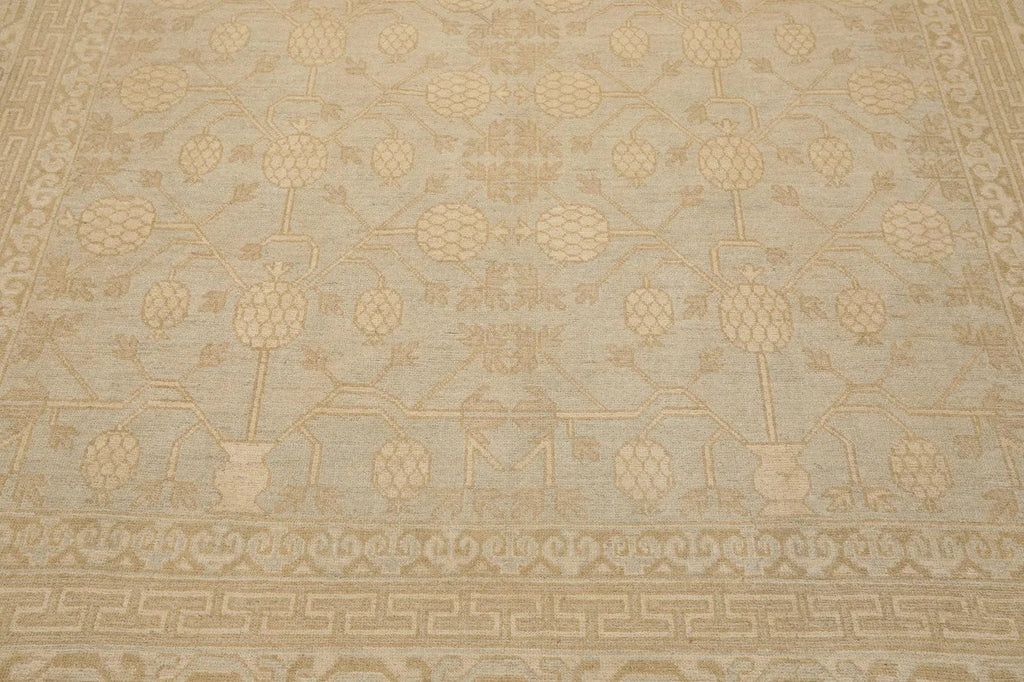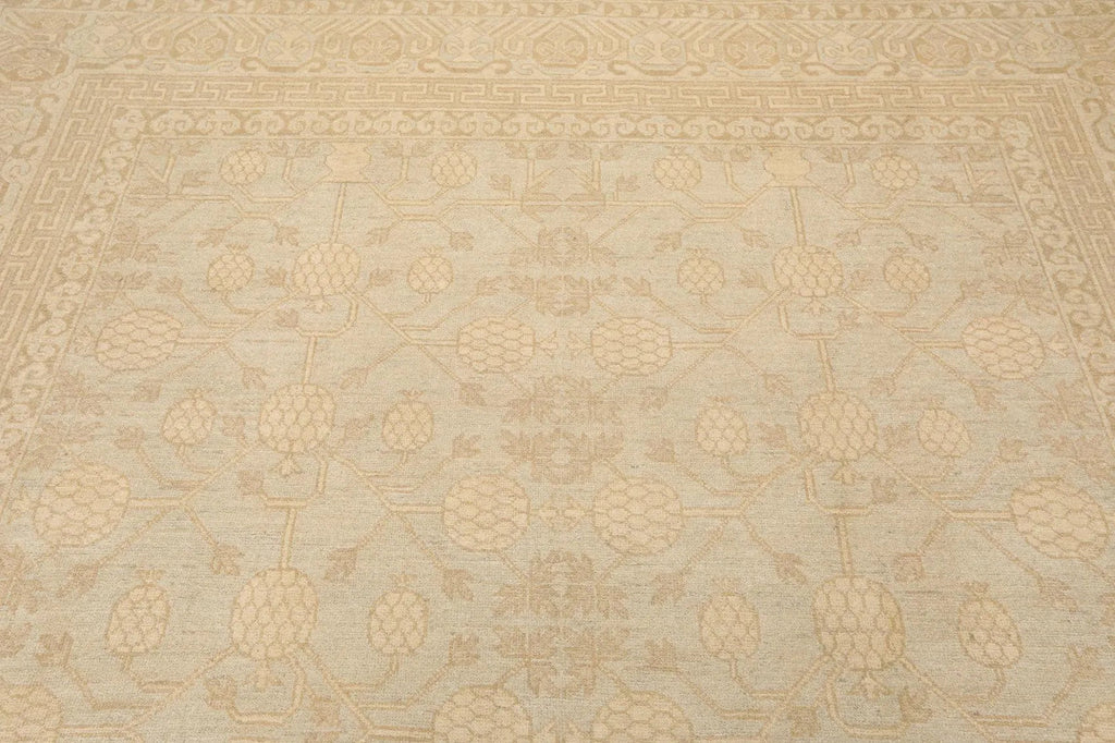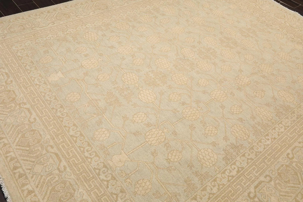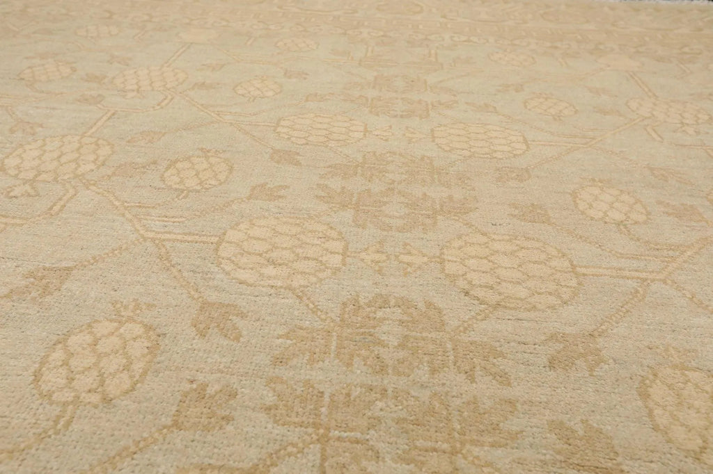 Story Behind the Art: Hand-knotted rugs are Pakistan's second-largest cottage and small industry that began as early as the 11th century under the Mughal rule. The craftsmen have the capacity to produce any type of rug using all the popular motifs of guls, medallions, paisleys (botehs), traceries, and geometric designs in various combinations. While the "stone washes" are used to fade and soften colors, the Peshawar style is characterized by a thinly sheered pile, large print designs, and most predominantly, their antique ivory and sometimes golden tones.
