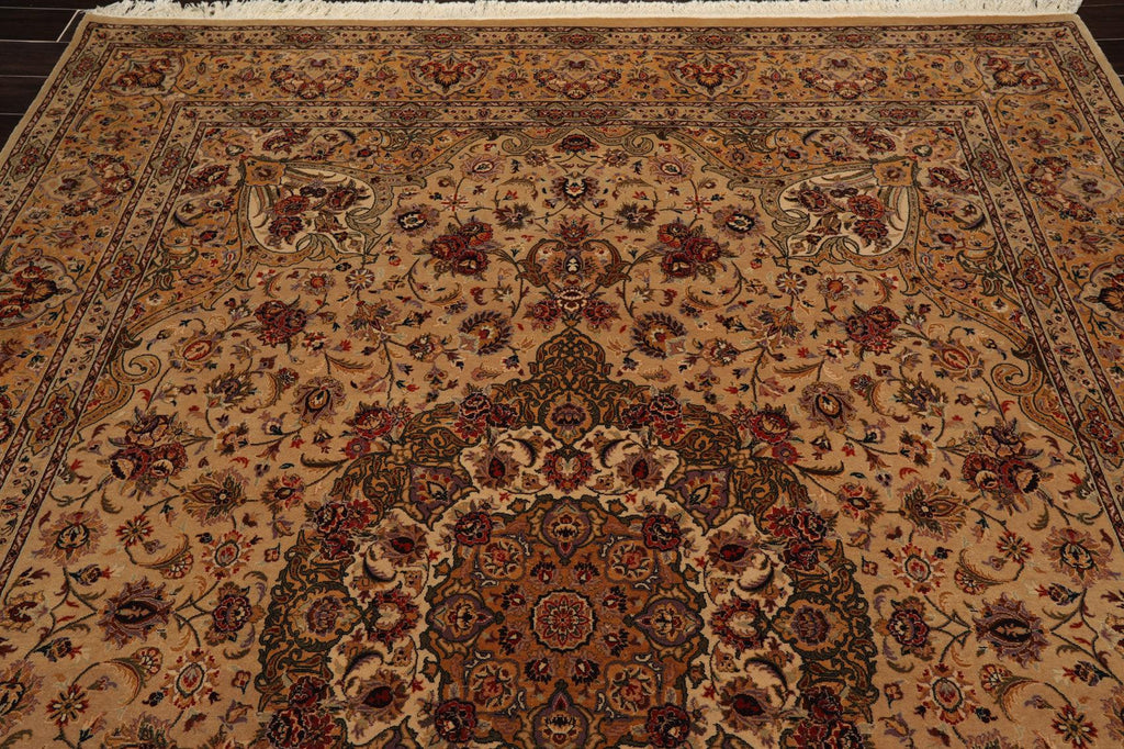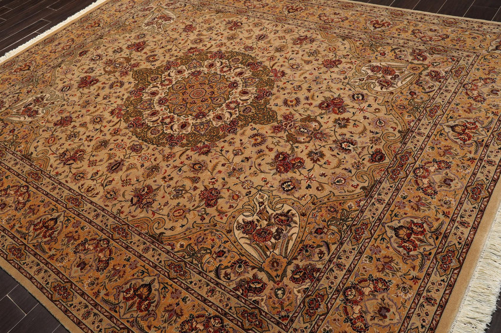 Story Behind the Art Hand-knotted rugs are Pakistan's second-largest cottage and small industry that began as early as the 11th century under the Mughal rule. The craftsmen have the capacity to produce any type of rug using all the popular motifs of guls, medallions, paisleys (botehs), traceries, and geometric designs in various combinations. But the Pak Persian rugs are a quality best defined by their 16 by 18 KPSI count yielding over 288 kpsi or the common 300 KPSI quality which makes them exceptionally dense and enduring for high traffic area. Initially produced to address the vacuum when the US stopped trading with Iran in the 1970s, these rugs have persisted and are quite popular due to their superior weaving and array of design choices.