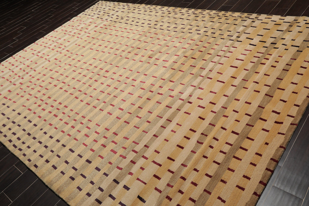 Story Behind the Art For centuries Tibetans have used rugs for decorative and functional purposes, drawing upon geometric patterns, auspicious symbols, real and mythical animals, and natural imagery to create beautiful, colorful designs. But it was only after 1959 with the Chinese invasion of Tibet and the growth of Tibetan diaspora in Nepal and Tibet that Tibetan rug weaving underwent a crucial commercial revival. In the 1970s, Tibetan rugs rose to prominence and Nepalese artisans, drafted in to keep up with the rising demand, became the mainstay of the Tibetan rug weaving traditions. While either Turkish knot or the Persian knot (Senneh knot) is used to create the pile or depth of a rug in most of Asia, the Tibetan rug utilizes a slit-loop technique called the Tibetan knot. Here rugs are woven by wrapping a continues length of yarn over a rod laid across the warps stretched on the loom. When the rod has been wrapped for its entire length, a knife is slid along the rod, cutting the wrapped yarn into two rows of pile tufts. The resultant pile is a wonderful mix of depth, texture and richness. Traditional Tibetan rug motifs generally reflect the importance of Buddhist religion in Tibetan art and culture. Many design elements of Chinese origin like the phoenix, dragon, and lotus symbols alongside motifs from Chinese decorative tradition have also been assimilated in the rug repertoire of this region. In modern times, designs featured in Tibetan, Nepalese rugs (those woven by Tibetan refugees in Nepal) and Indo-Tibetans (woven in India) range from Westernized adaptations of traditional Tibetan motifs (such as branching floral designs and snow lions) to a large mixture of foreign and modern free-form patterns.