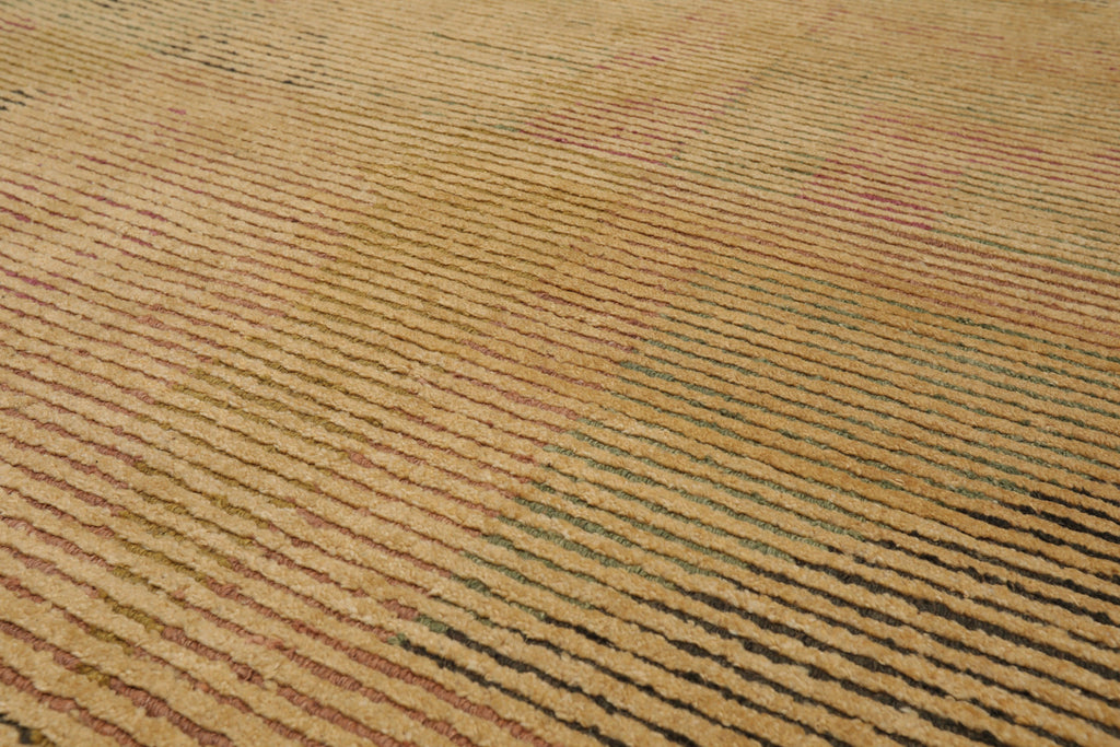 Story Behind the Art For centuries Tibetans have used rugs for decorative and functional purposes, drawing upon geometric patterns, auspicious symbols, real and mythical animals, and natural imagery to create beautiful, colorful designs. But it was only after 1959 with the Chinese invasion of Tibet and the growth of Tibetan diaspora in Nepal and Tibet that Tibetan rug weaving underwent a crucial commercial revival. In the 1970s, Tibetan rugs rose to prominence and Nepalese artisans, drafted in to keep up with the rising demand, became the mainstay of the Tibetan rug weaving traditions. While either Turkish knot or the Persian knot (Senneh knot) is used to create the pile or depth of a rug in most of Asia, the Tibetan rug utilizes a slit-loop technique called the Tibetan knot. Here rugs are woven by wrapping a continues length of yarn over a rod laid across the warps stretched on the loom. When the rod has been wrapped for its entire length, a knife is slid along the rod, cutting the wrapped yarn into two rows of pile tufts. The resultant pile is a wonderful mix of depth, texture and richness. Traditional Tibetan rug motifs generally reflect the importance of Buddhist religion in Tibetan art and culture. Many design elements of Chinese origin like the phoenix, dragon, and lotus symbols alongside motifs from Chinese decorative tradition have also been assimilated in the rug repertoire of this region. In modern times, designs featured in Tibetan, Nepalese rugs (those woven by Tibetan refugees in Nepal) and Indo-Tibetans (woven in India) range from Westernized adaptations of traditional Tibetan motifs (such as branching floral designs and snow lions) to a large mixture of foreign and modern free-form patterns.