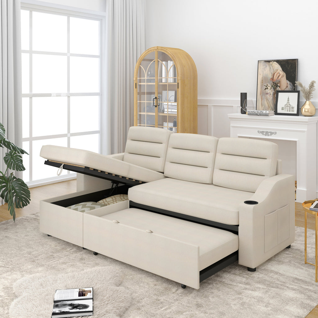 ✔ QUICK CONVERTIBLE TO SLEEPING BED: The sofa bed end pull-out drawer style, equipped with portable handles, with the help of the bottom pulley device to quickly complete the conversion of the bed. It can meet your various needs and never have to worry about the arrival of uninvited guests.