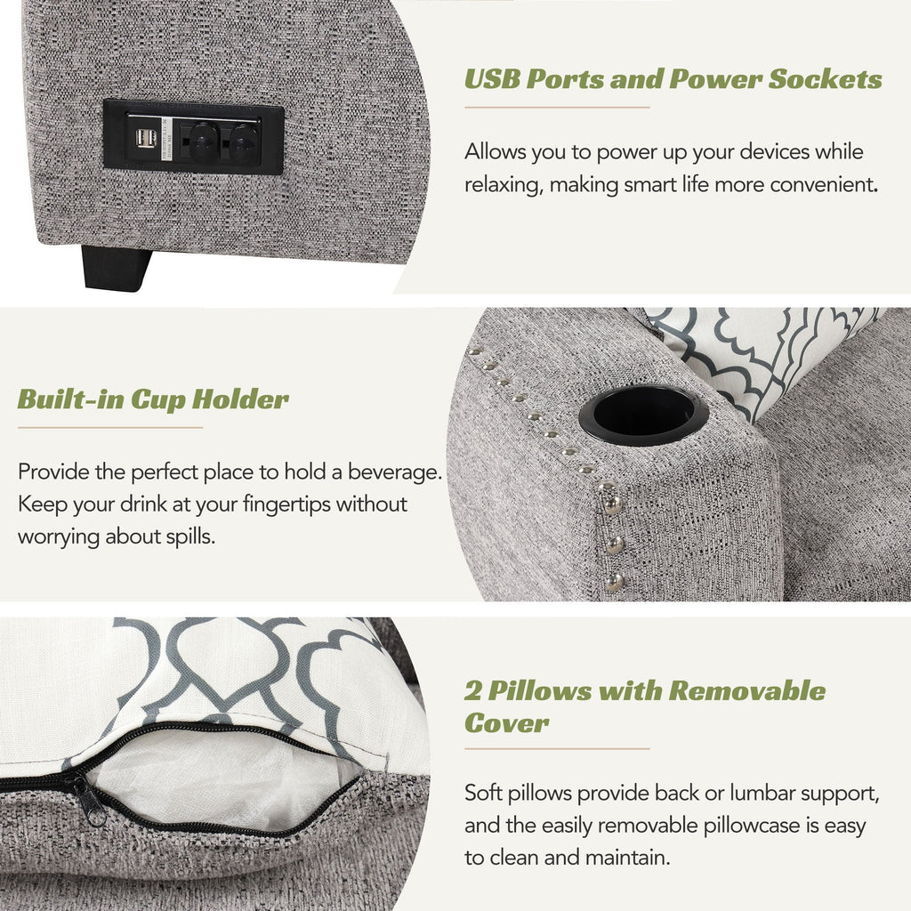 - 2 USB Ports and 2 Power Sockets for Charging Convenience - Stay connected and charge your devices conveniently without having to leave the comfort of your sofa. When your phone or laptop runs out of battery, you don't have to worry about playing games or working on the couch.