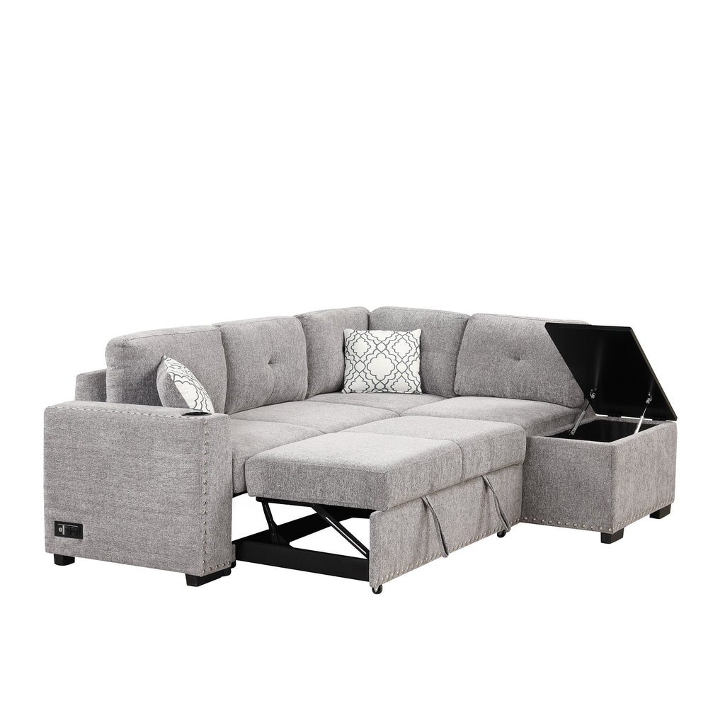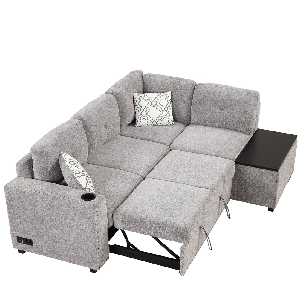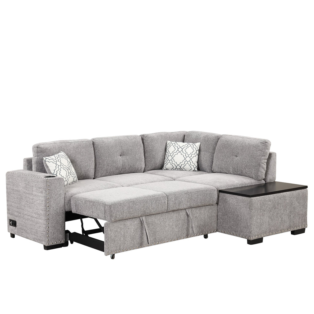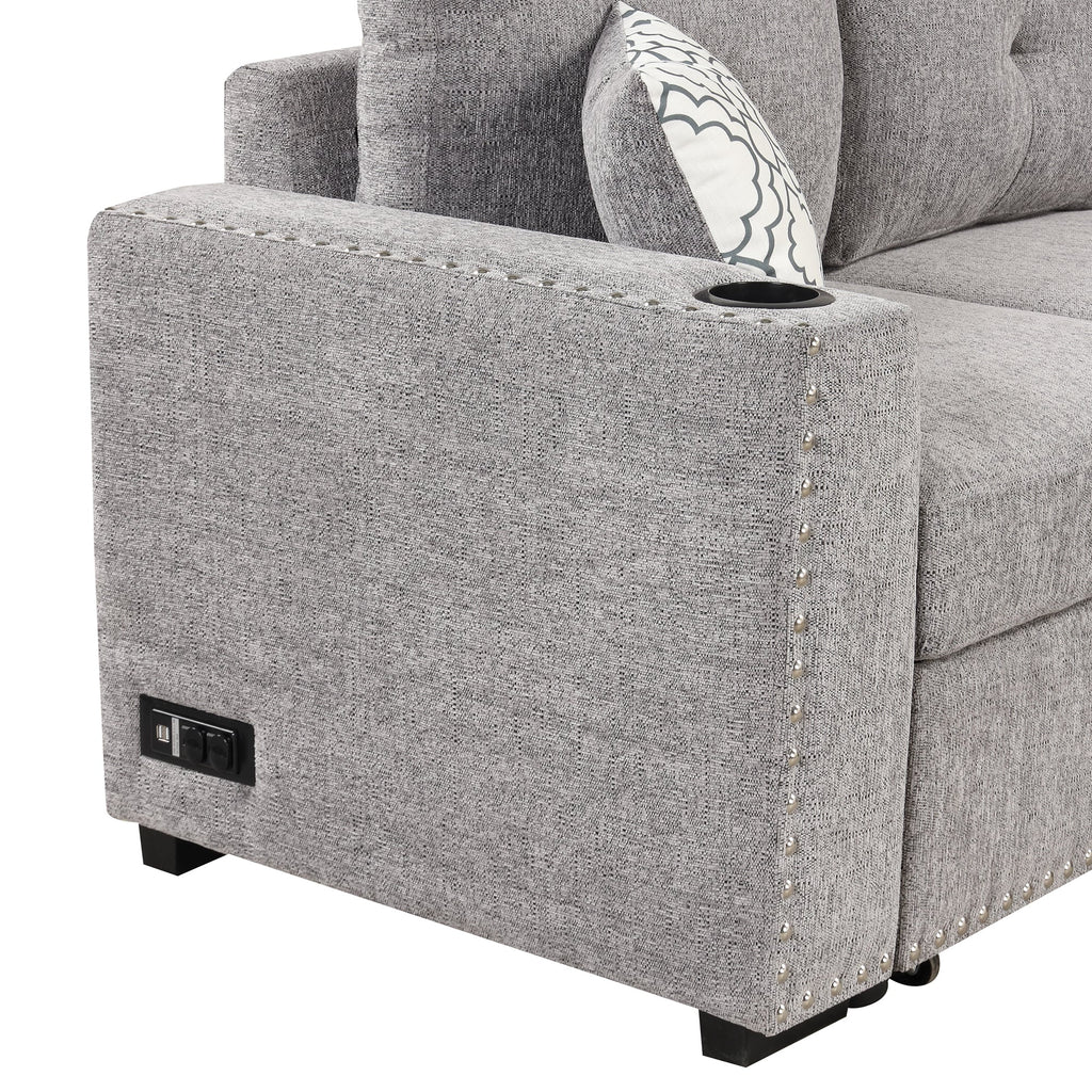 - Pull Out Sleeper Sofa Bed - Sofa bed converts quickly and easily into a sleeper bed with simple pull-out action. Easily transform this sofa into a comfortable bed whenever you need extra sleeping space, making it perfect for guests or small living spaces. Maximize your living area with this L-shaped sofa, providing ample seating while optimizing your room's layout.