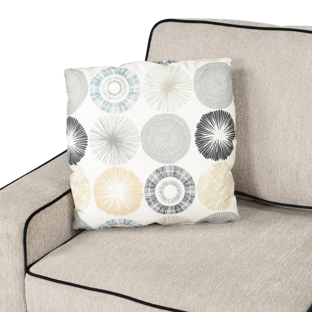 - 3 Soft Jacquard Pillows - Accented with soft jacquard throw pillows for a splash of geometric pattern and color contrast, provides extra support for your lumbar and back. Wrap up its sleek silhouette with design bonuses including black finish legs and two patterned accent pillows.