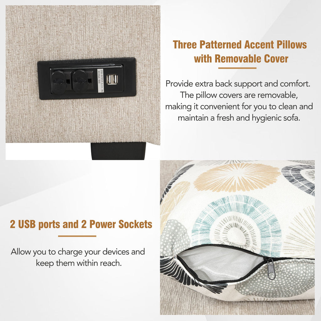 - 2 USB ports and 2 Power Sockets - Stay connected and charged with 2 USB ports and 2 power sockets conveniently located on the sofa, allowing you to charge your devices and keep them within reach.