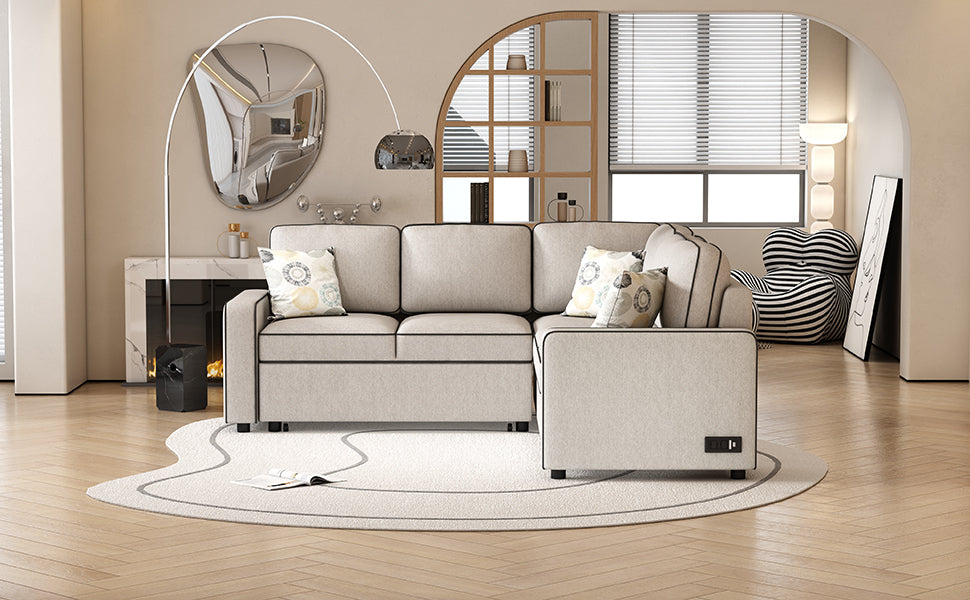 - Convertible Sofa Bed - The sectional sofa with a pull-out bed underneath converts into extra sleeping space when required. With simple, flexible, and convenient design, which allow you to configure the living room space for your needs effortlessly. This sectional sofa is perfect for unexpected guests and is necessary in every home.