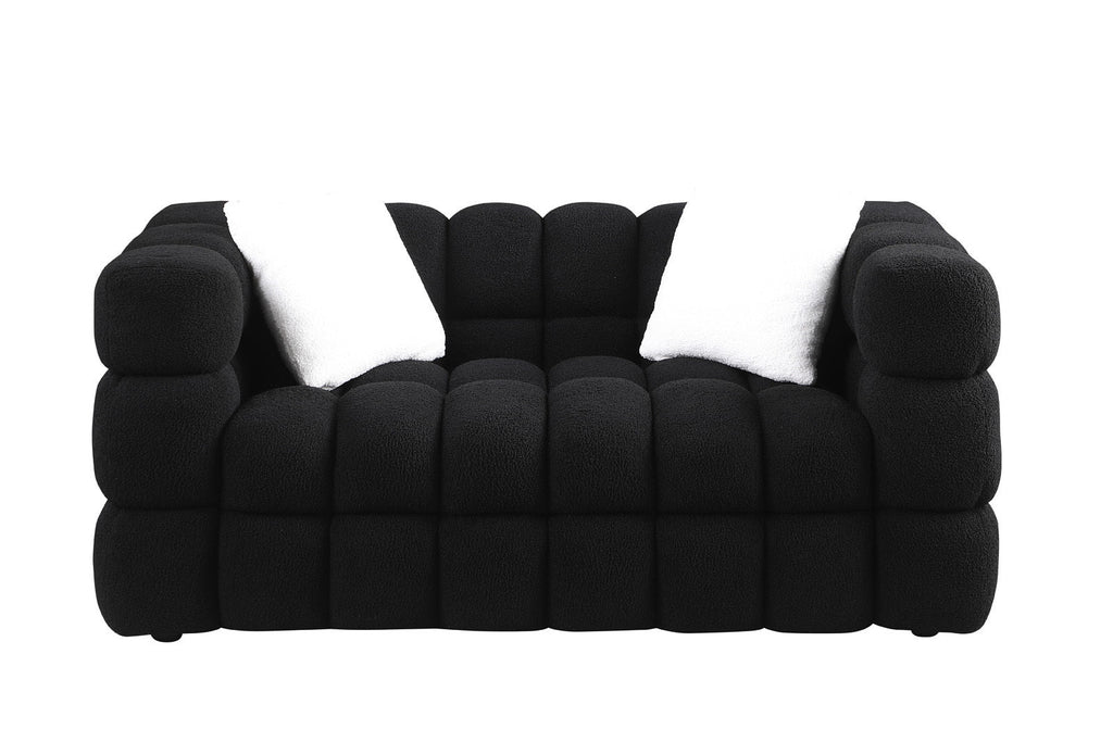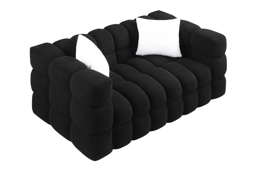 84.3/62.2 length, 35.83" deepth, human body structure for USA people, marshmallow sofa,boucle sofa, White color,3 seater. sofa and loveseater
