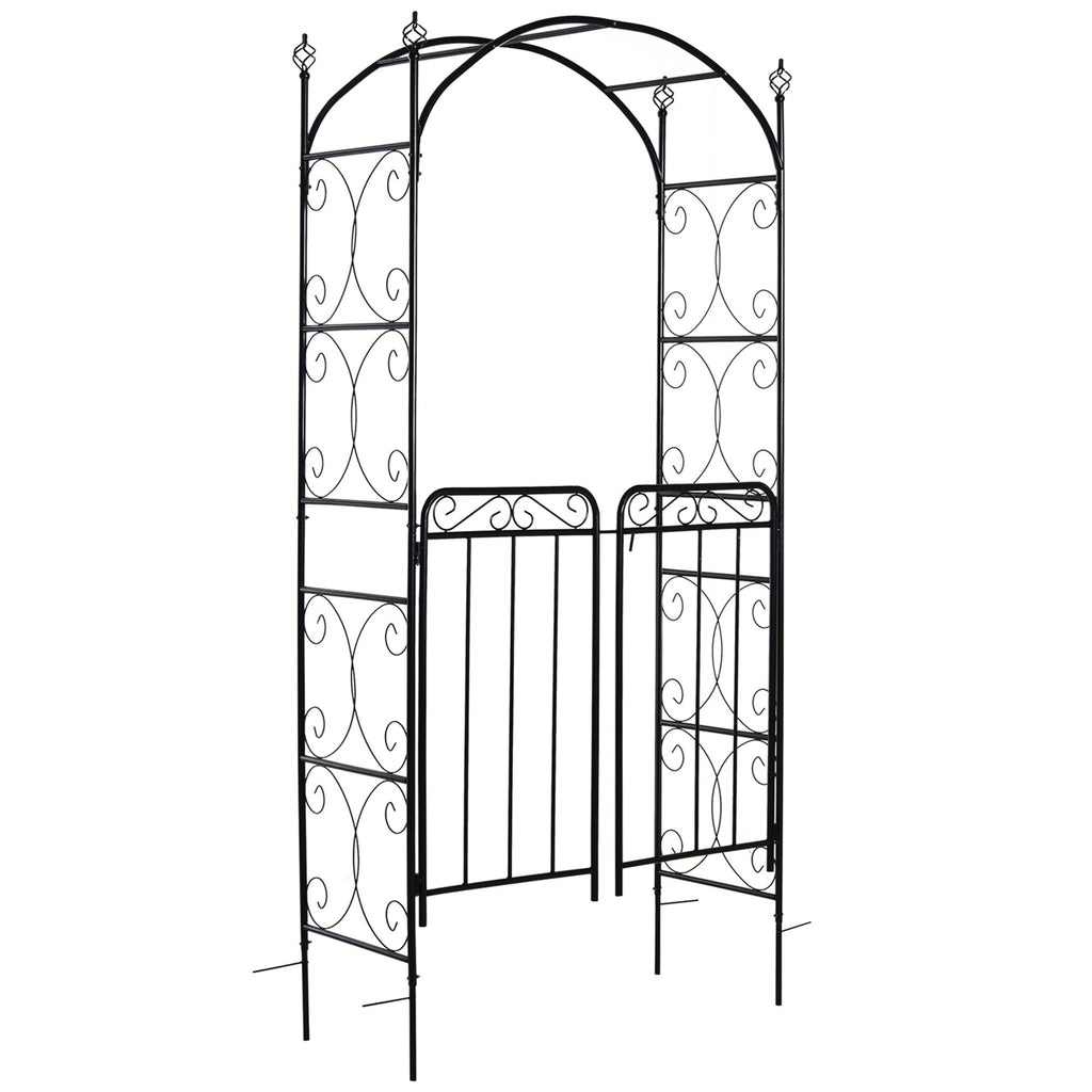 - Arbor for Venue or Garden Use: Indoor or outdoor, our two trellis gated garden arch makes excellent décor. It's made of epoxy-coated steel allowing the strength of metal with a sleek weather-safe surface.