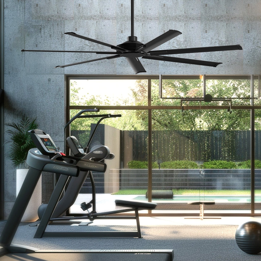 This 84-inch/100-inch industrial extra-large size ceiling fan with a remote control function is designed for large indoor spaces. The 7-blade aluminum reversible fan blades perfectly complement the sophisticated urban edge. The suspension system supports 11-degree ceiling installation. Equipped with an 8-inch/12-inch boom for easy installation and use. It also comes with a 6-speed remote control. The maximum air volume value is 11200CFM/11500CFM. In summer, the air of this ceiling fan flows downward, producing a refreshing breeze. This ceiling fan reverses the flow in winter, spreading warm air evenly throughout the room.