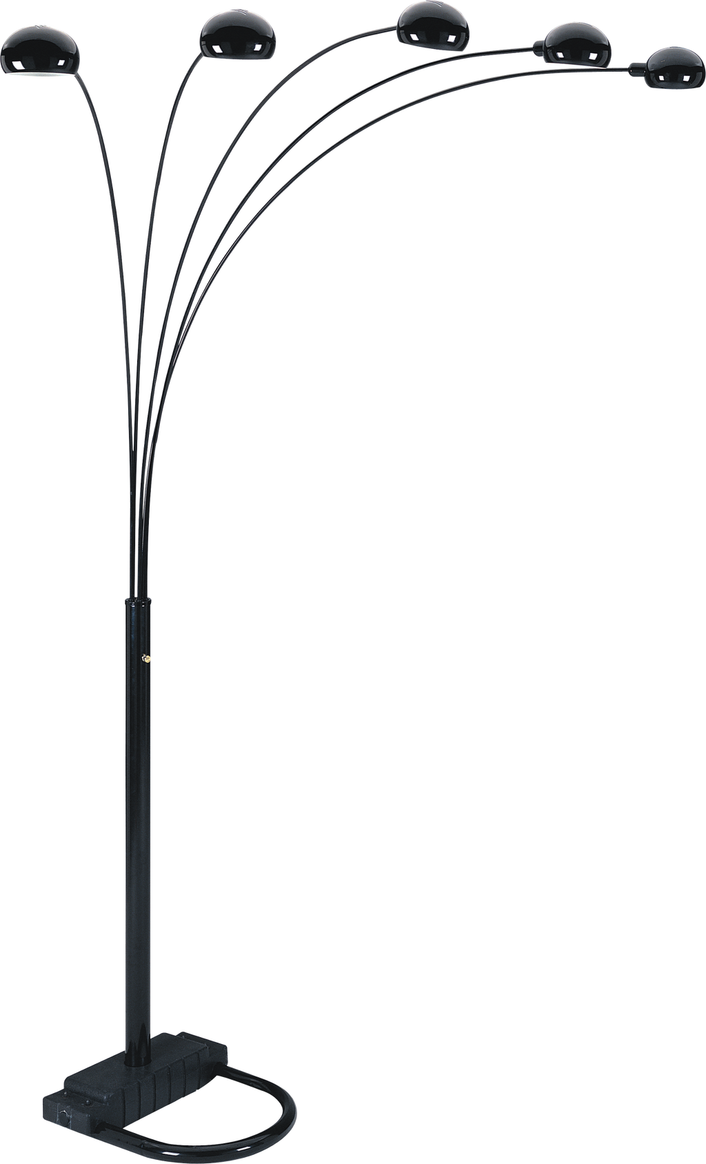 - 5-Arm arch floor lamp with adjustable domes for directing the light