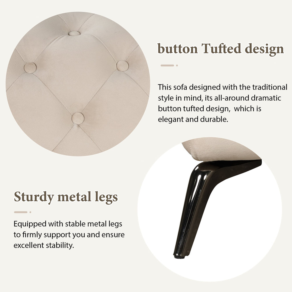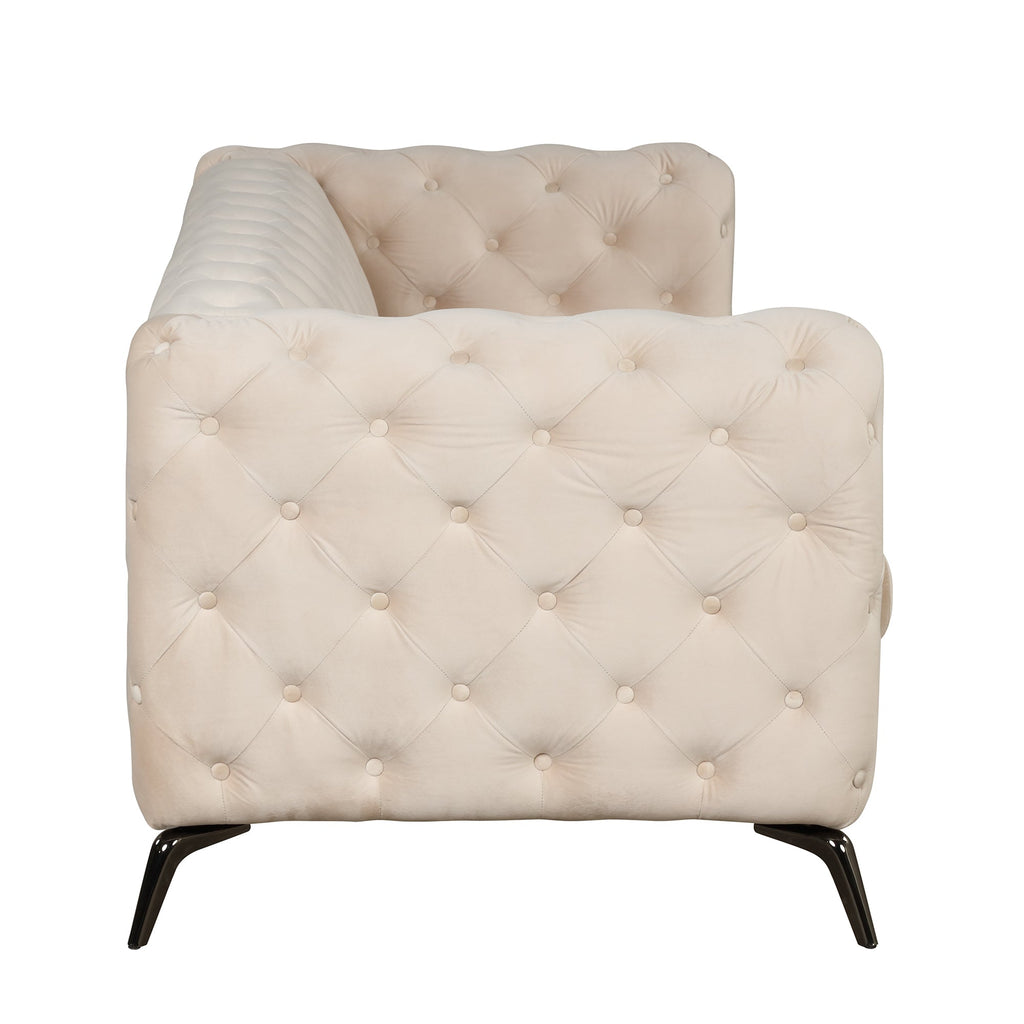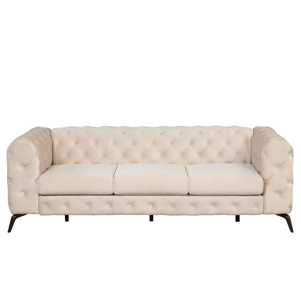 85.5" Velvet Upholstered Sofa with Sturdy Metal Legs, Modern Sofa Couch with Button Tufted Back, 3 Seater Sofa Couch for Living Room, Apartment, Home Office, Beige