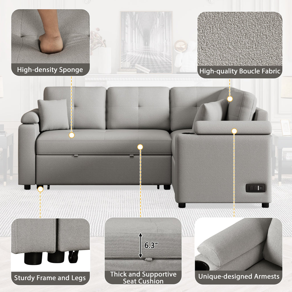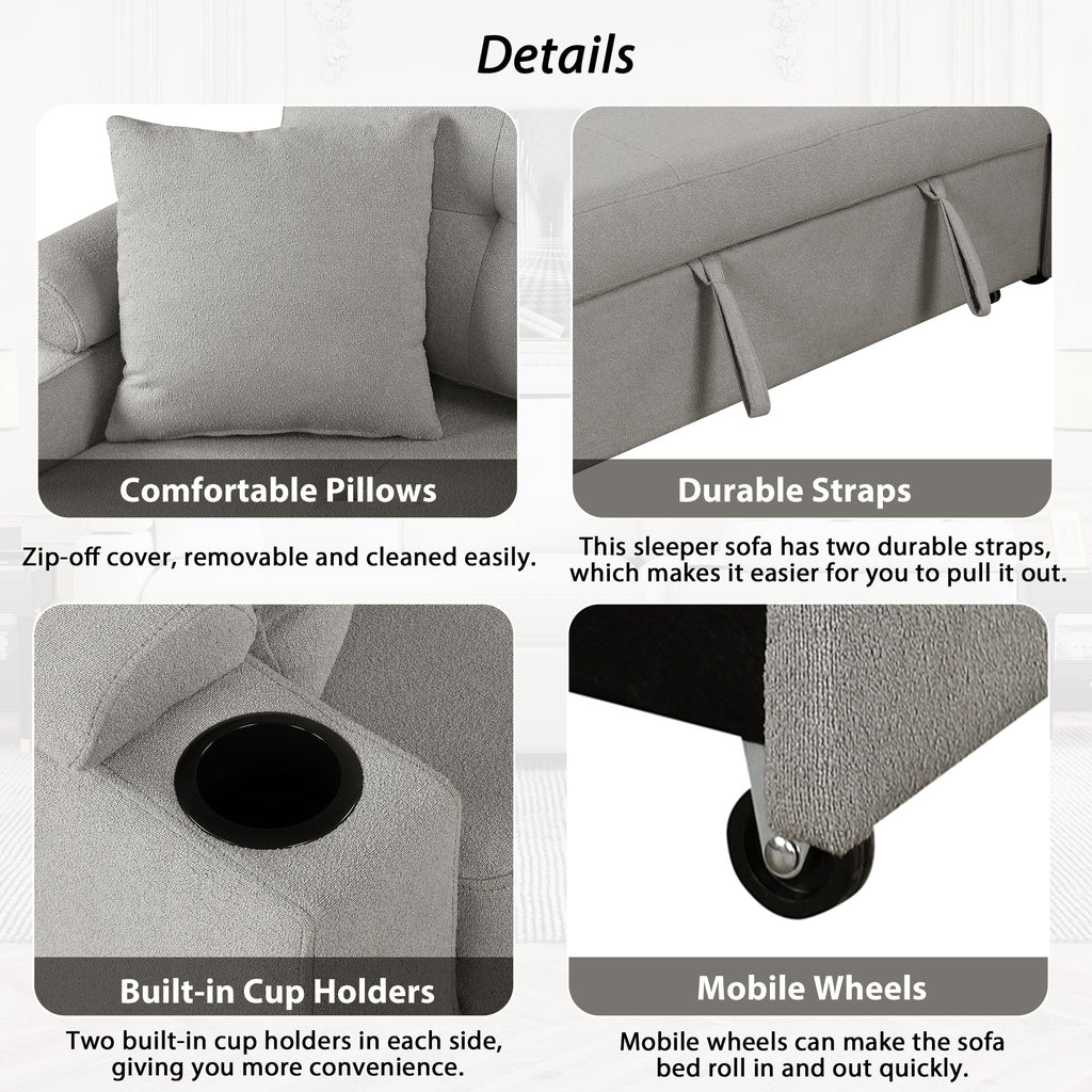 - Carefully-selected Fabric - Wrapped in carefully-selected boucle fabric, this sleeper sofa features strong texture, which provides timless style, and soft touch, ensuring you a cozy leisure area.