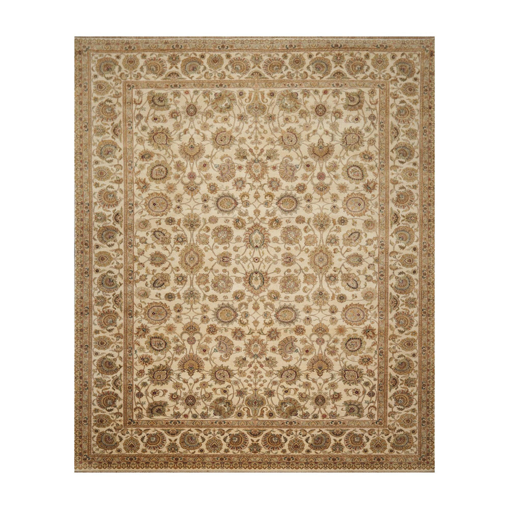 This is a beautiful Beige, Tan, Green Color Agra design Hand Knotted, Persian Oriental 100% Wool Rug. The rug gets its vibrant colors from vegetable dyes.