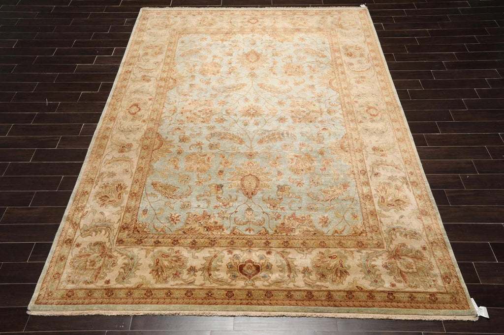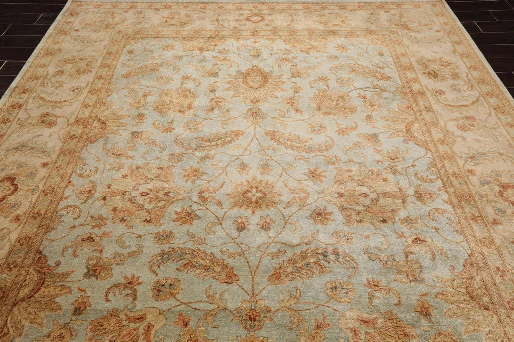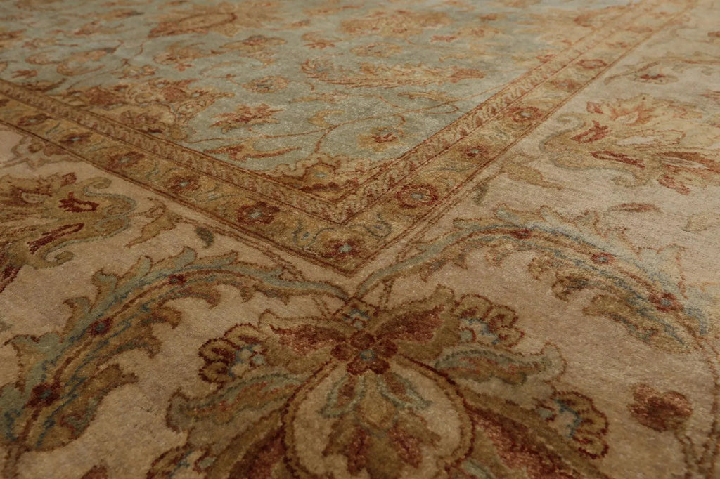 Story Behind the Art: Hand-knotted rugs are Pakistan's second-largest cottage and small industry that began as early as the 11th century under the Mughal rule. The craftsmen have the capacity to produce any type of rug using all the popular motifs of guls, medallions, paisleys (botehs), traceries, and geometric designs in various combinations. While the "stone washes" are used to fade and soften colors, the Peshawar style is characterized by a thinly sheered pile, large print designs, and most predominantly, their antique ivory and sometimes golden tones.