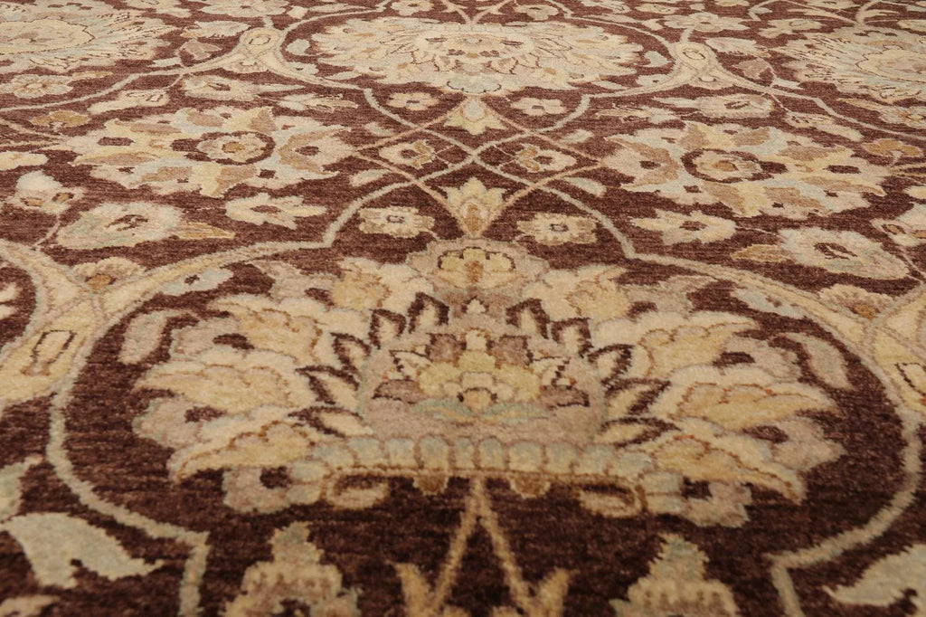 Story Behind the Art: Hand-knotted rugs are Pakistan's second-largest cottage and small industry that began as early as the 11th century under the Mughal rule. The craftsmen have the capacity to produce any type of rug using all the popular motifs of guls, medallions, paisleys (botehs), traceries, and geometric designs in various combinations. While the "stone washes" are used to fade and soften colors, the Peshawar style is characterized by a thinly sheered pile, large print designs, and most predominantly, their antique ivory and sometimes golden tones.