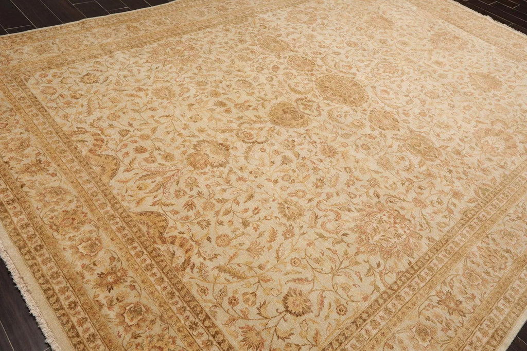 Cosmopolitan and sophisticated, the rug features bold arabesque floral and botanical motifs on the main field encompassed by a sumptuous main border enclosed within the vine and scroll minor borders. This rug representing an illustrious legacy of exquisite artistry and the intricate craftsmanship is primed to add visual glamor and class to its surroundings. Its soft texture and timeless design make it ideal to enhance any space where it is placed.