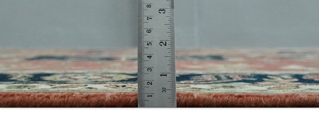 Oushak rugs have been made for centuries and carry a tradition and art. This specific rug is made in India, in the city of Bhadohi. Bhadohi is one of the biggest rug manufacturing cities. Carpet weaving in the region dates back to the 16th century during the reign of Akbar. The skilled artisans of Bhadohi have been carrying the tradition of rug-making for centuries.