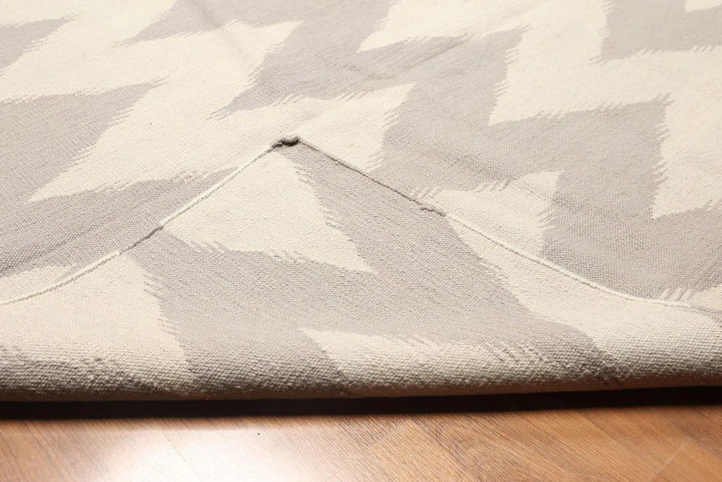 This is a beautiful 8'x10' Beige and Gray Color Hand Woven Kilim Dhurry 100% Wool Rug. Its elegant style is easy to decorate with and perfect for living room, dining room, bed room or anywhere in the residence and office.