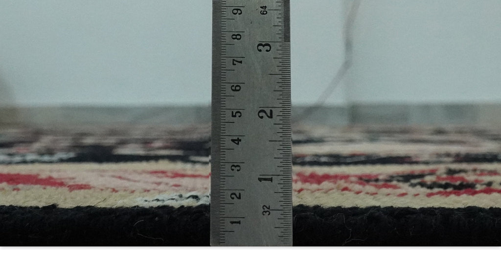 This is a 8x10 Black, Rust, and Olive Traditional Oriental Hand Knotted Wool Area Rug. Handmade by skilled artisans, this luxurious wool rug brings a touch of traditional elegance to any room. The intricate hand-knotted design and vibrant color pattern add warmth and style to your home.