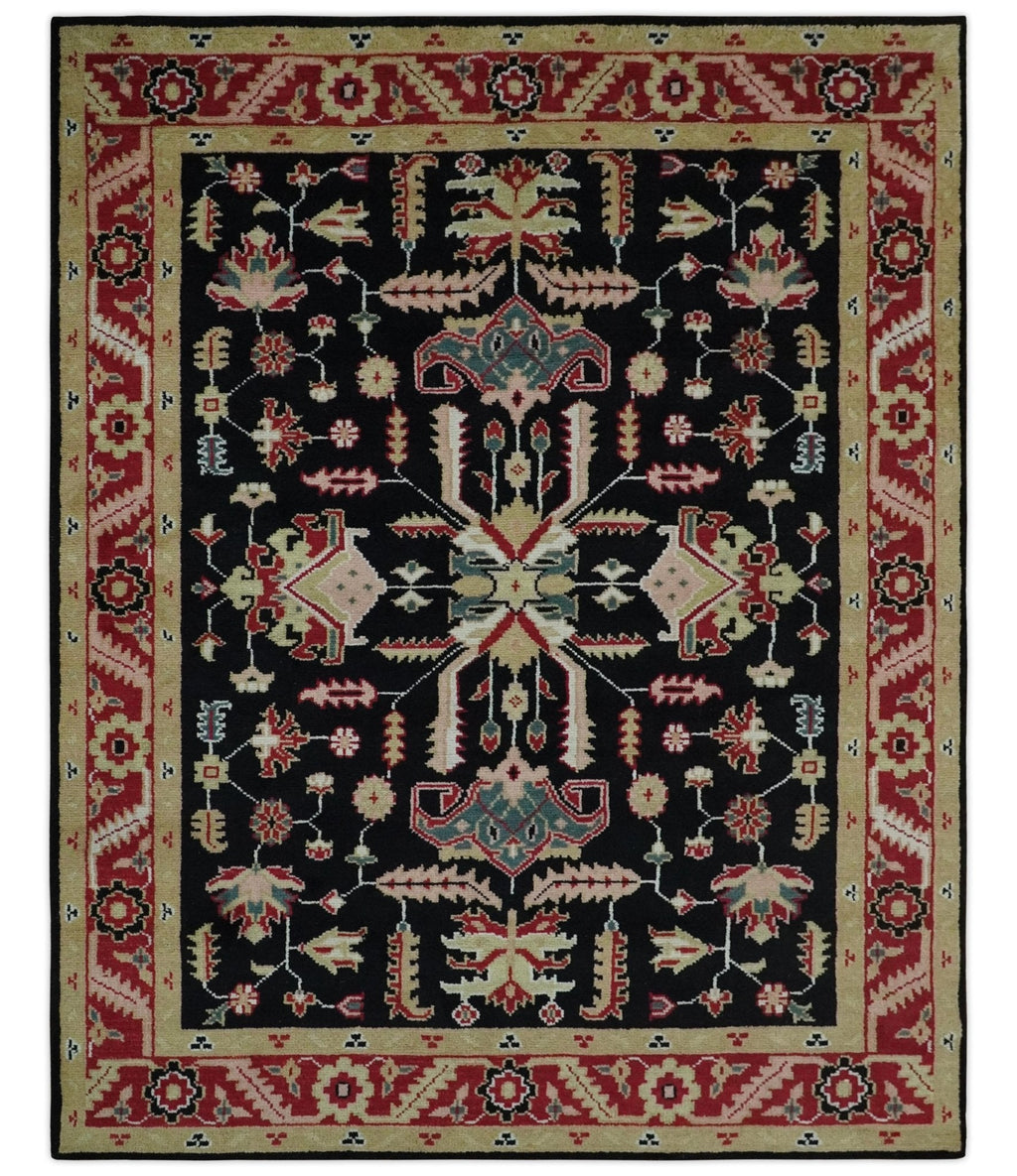 8x10 Black, Rust, and Olive Traditional Oriental Hand Knotted Wool Area Rug