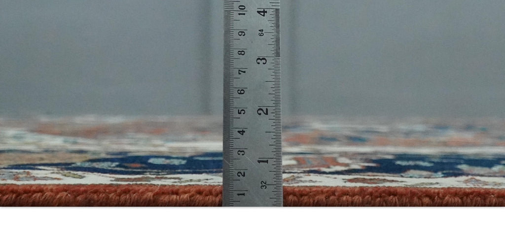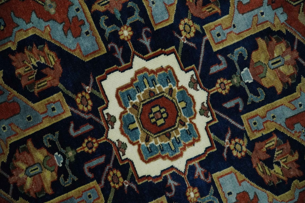 Heriz rugs have been made for centuries and carry a tradition and art. This specific rug is made in India, in the city of Bhadohi. Bhadohi is one of the biggest rug manufacturing cities. Carpet weaving in the region dates back to the 16th century during the reign of Akbar. The skilled artisans of Bhadohi have been carrying the tradition of rug-making for centuries.