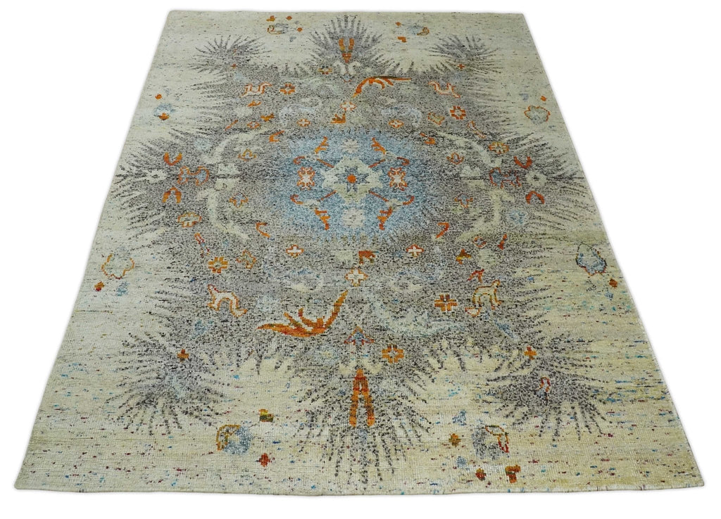 This Hand-Knotted Rug has been Made with Handspun Recycled Silk. The beautiful colors of the rug and the modern design of the rug complete your space without making it look busy. Hand-Knotted rugs are durable and can last for decades if treated right.