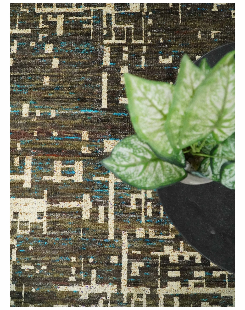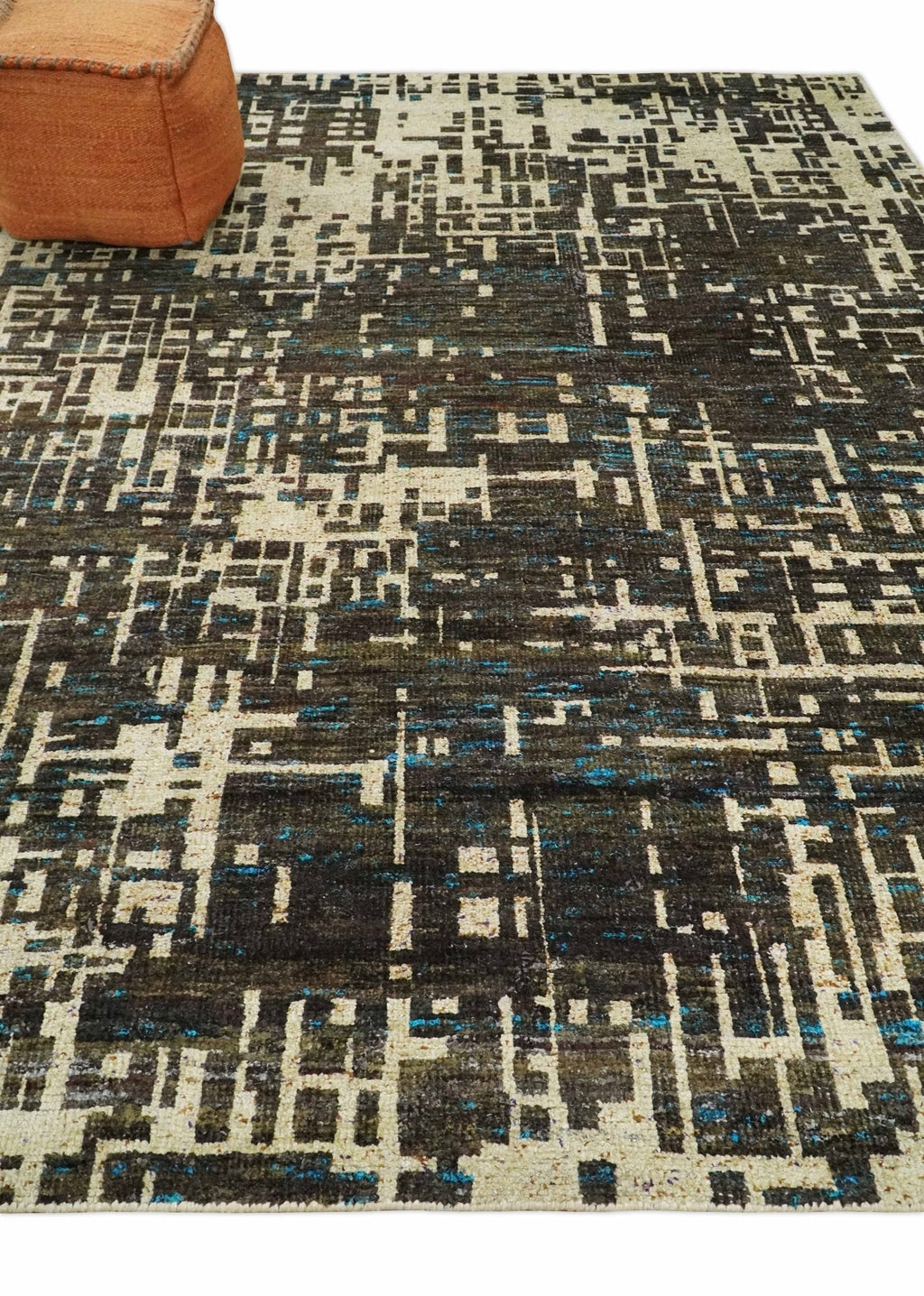 8x10 Hand Knotted Charcoal Beige Modern Abstract Contemporary Recycled Silk Area Rug | OP1