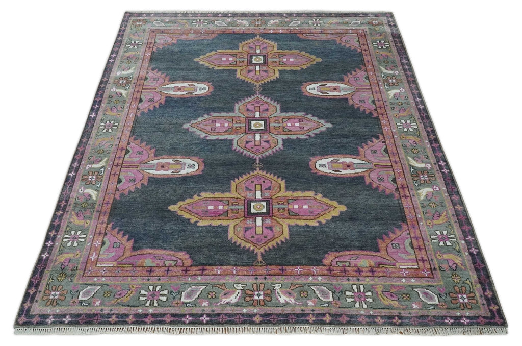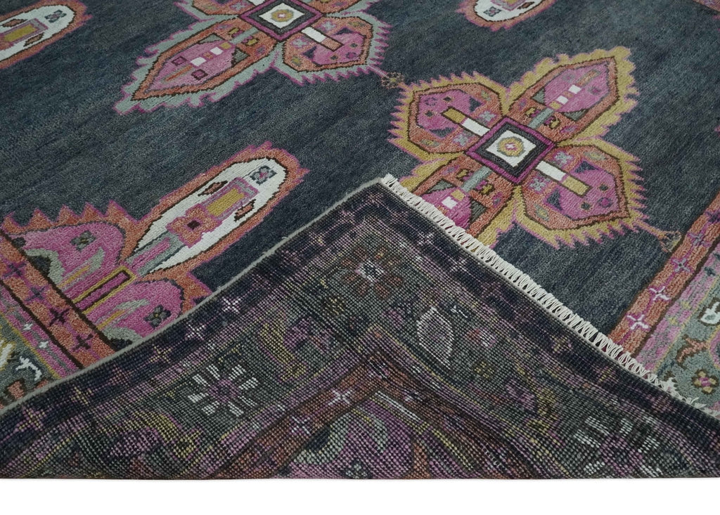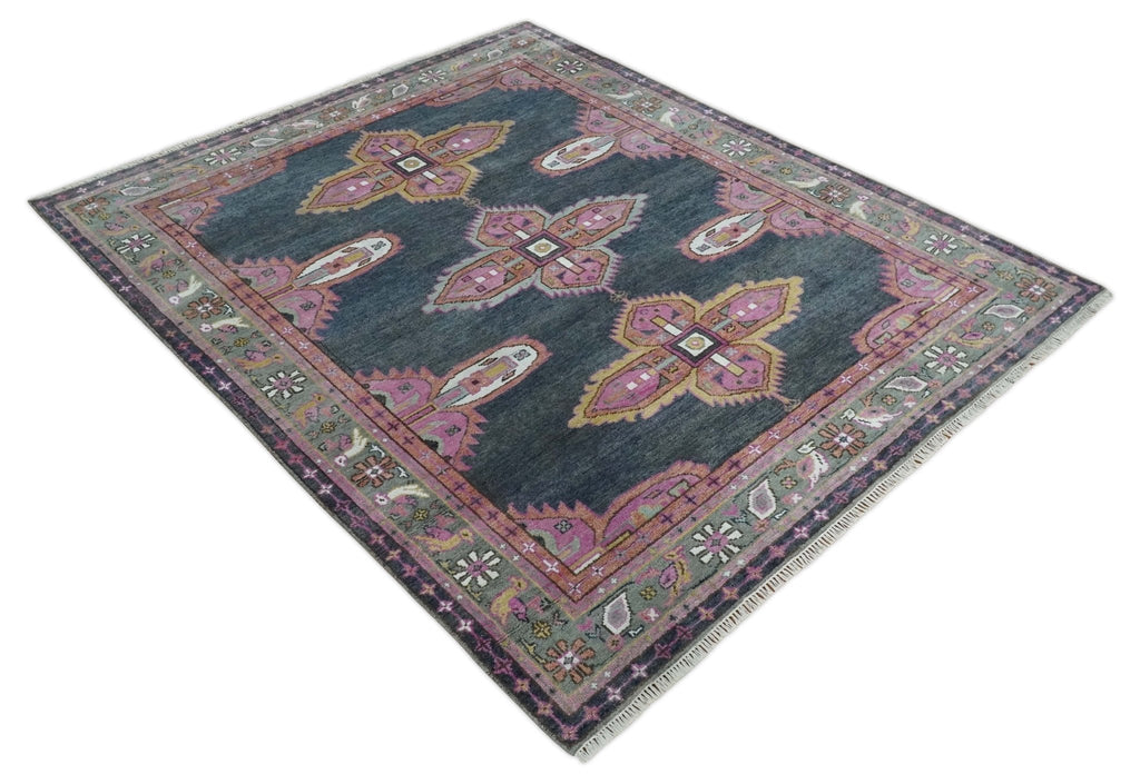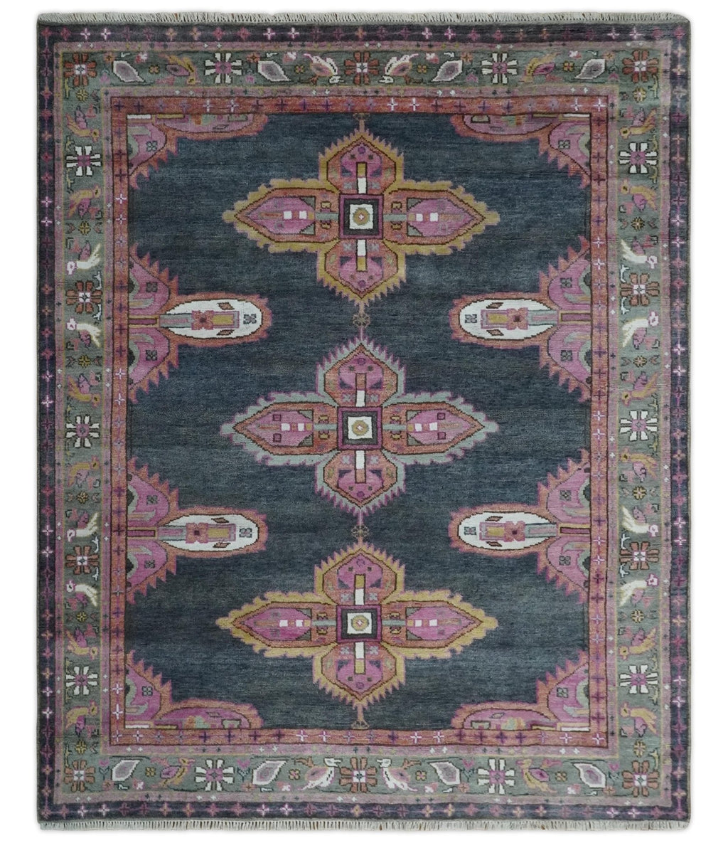 8x10 Hand Knotted Charcoal, Silver and Pink Traditional Wool Area Rug