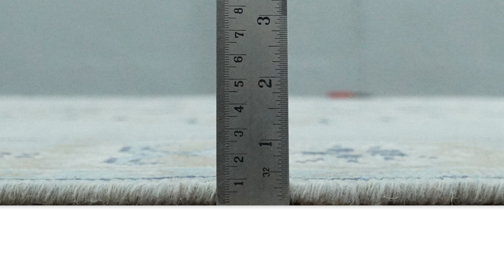 This specific rug is made in India, in the city of Bhadohi. Bhadohi is one of the biggest rug manufacturing cities. Carpet weaving in the region dates back to the 16th century during the reign of Akbar. The skilled artisans of Bhadohi have been carrying the tradition of rug-making for centuries.