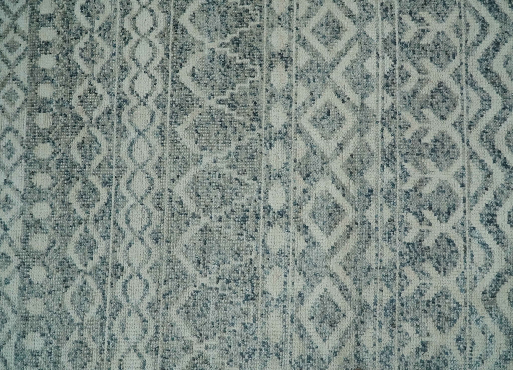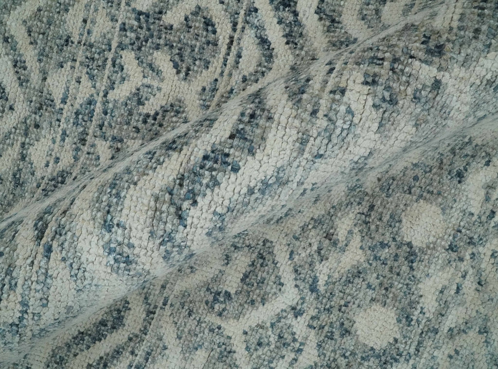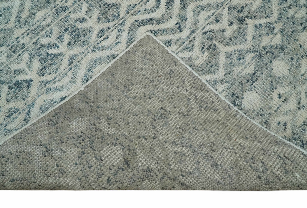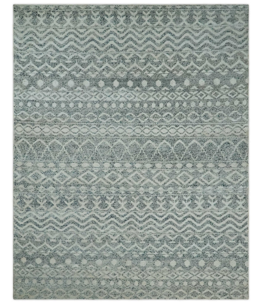 8x10 Hand Knotted Ivory, Gray and Blue Modern Contemporary Southwestern Tribal Trellis Recycled Silk Area Rug | OP40