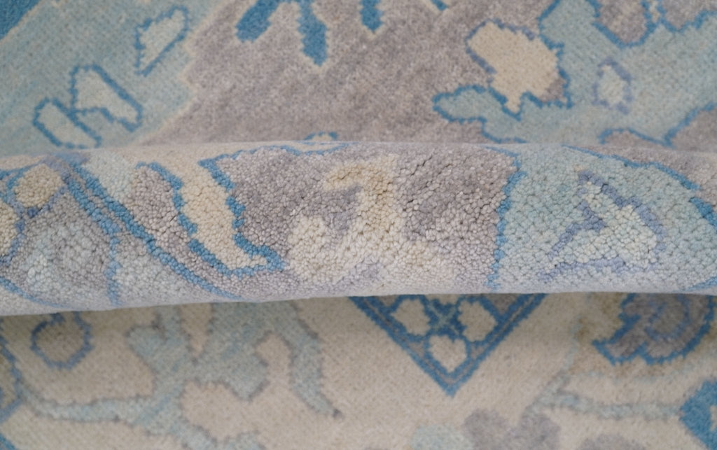 This specific rug is made in India, in the city of Bhadohi. Bhadohi is one of the biggest rug manufacturing cities. Carpet weaving in the region dates back to the 16th century during the reign of Akbar. The skilled artisans of Bhadohi have been carrying the tradition of rug-making for centuries.