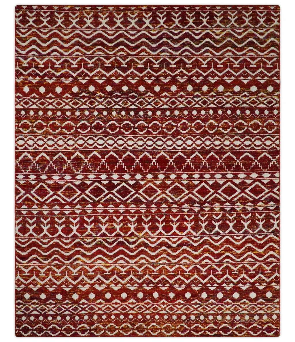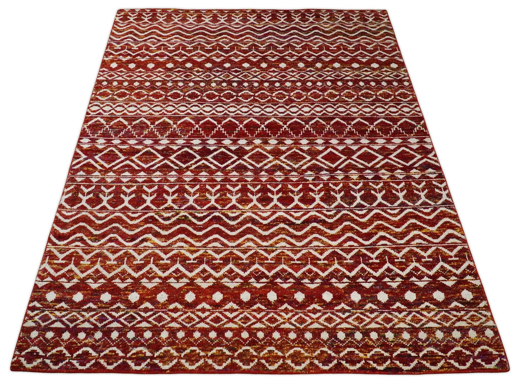 This Hand-Knotted Rug has been Made with Handspun Recycled Silk. The beautiful colors of the rug and the modern design of the rug complete your space without making it look busy. Hand-Knotted rugs are durable and can last for decades if treated right.