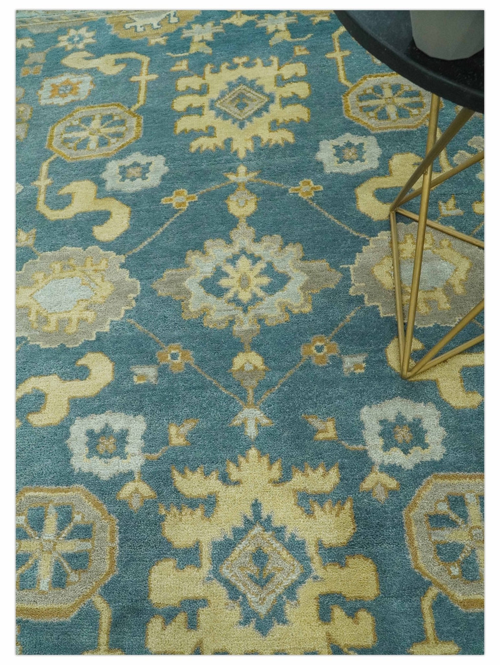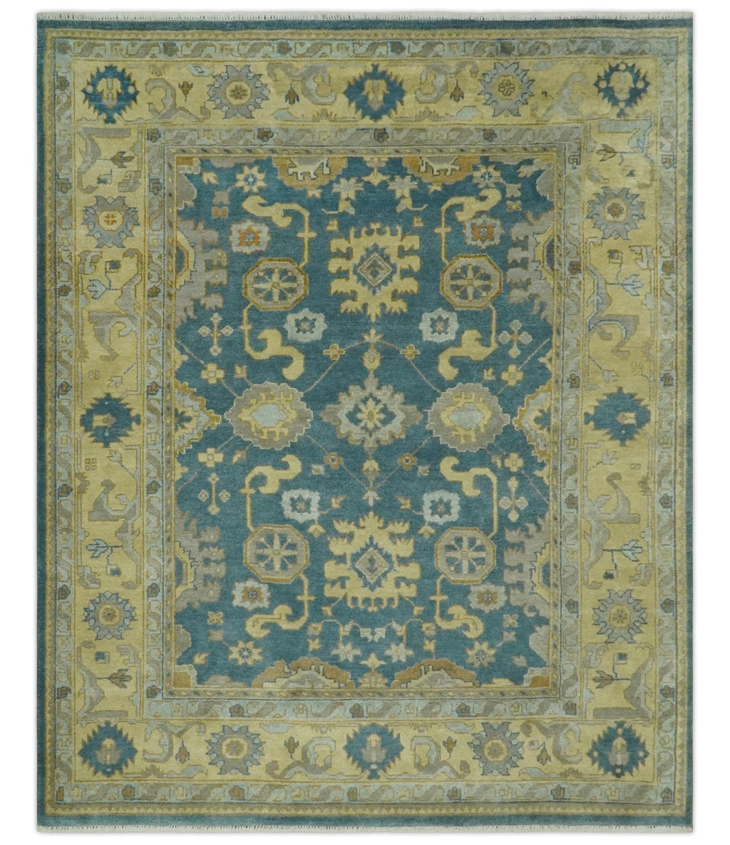 This 8x10 hand-knotted oriental rug features traditional designs and is made from high-quality wool, providing both durability and style. The rich teal and olive colors add a touch of elegance to any space. Bring a touch of tradition and luxury into your home with this timeless Oushak rug.
