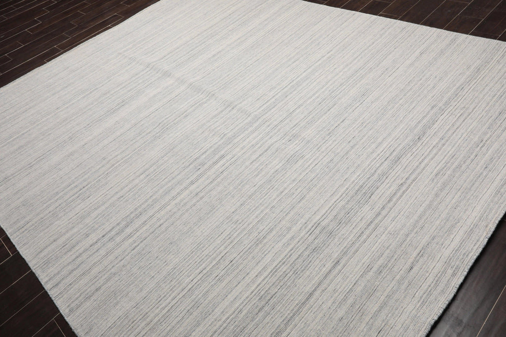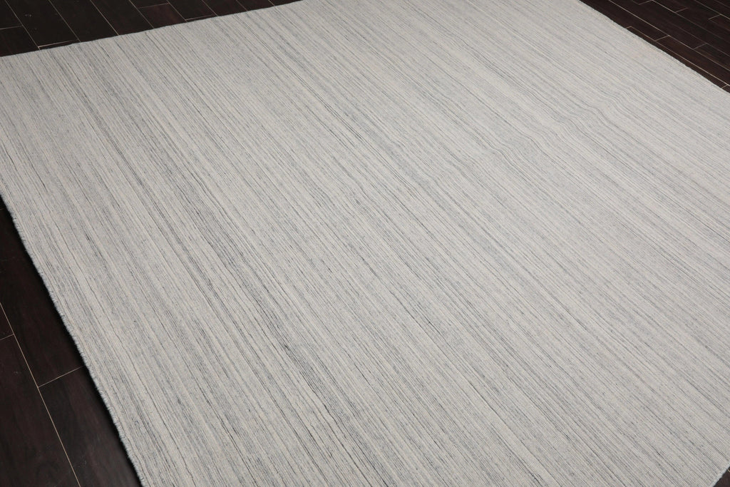 This is a beautiful Off White, Silver, -- Select Color -- Color Hand Woven, Handmade Flatweave Oriental PET Yarn Rug.