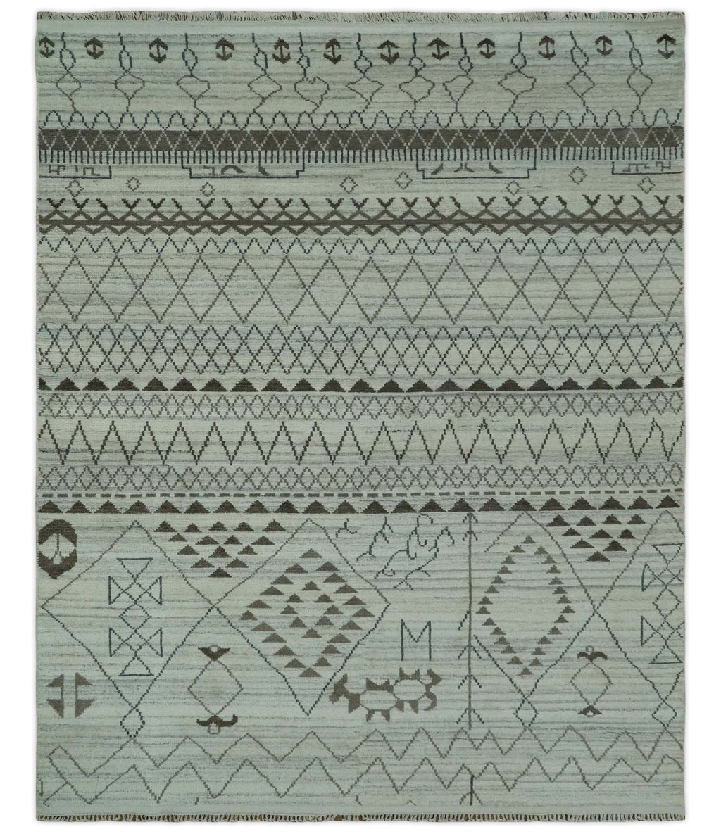 8x10 Ivory, Gray and Charcoal Hand Knotted Multi size Southwestern wool area Rug