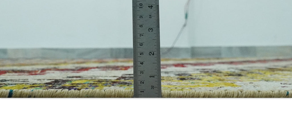 This 8x10 area rug features a stylish and timeless Greek key design, hand-knotted with high-quality wool for durability and softness. The ivory, maroon, black, and mustard colors add a luxurious touch to any room. Enhance your decor while enjoying the benefits of a high-quality wool rug.