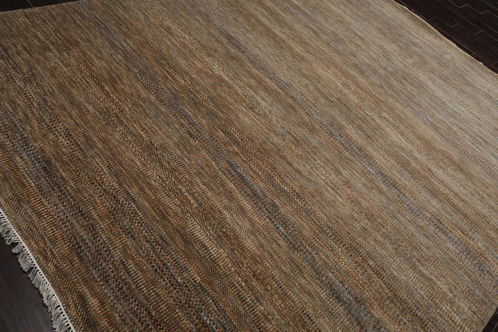 The exquisite hand-knotted Tibetan Oriental rug before you showcases a captivating blend of moss green, gray, beige, blue, and brown hues, creating a harmonious and visually appealing color palette. Crafted from a combination of lustrous bamboo silk and plush wool, it offers a luxurious feel and durability that is unmatched.The natural variations in the colors and textures add depth and character to the rug, making it a versatile and elegant addition to any decor style. Whether placed in a contemporary living room or a cozy bedroom, this rug brings warmth, style, and timeless beauty to your space.