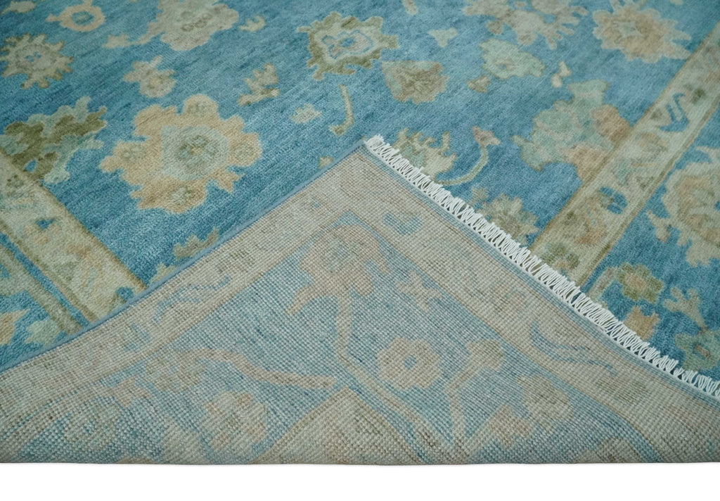 8x10 Oushak Hand Knotted Blue and Beige Traditional Wool Rug