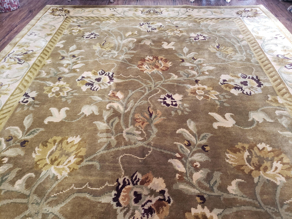 A Lovely Vintage Handmade Hand Knotted Wool Tibetan Area Rug. A great way to transform any space.