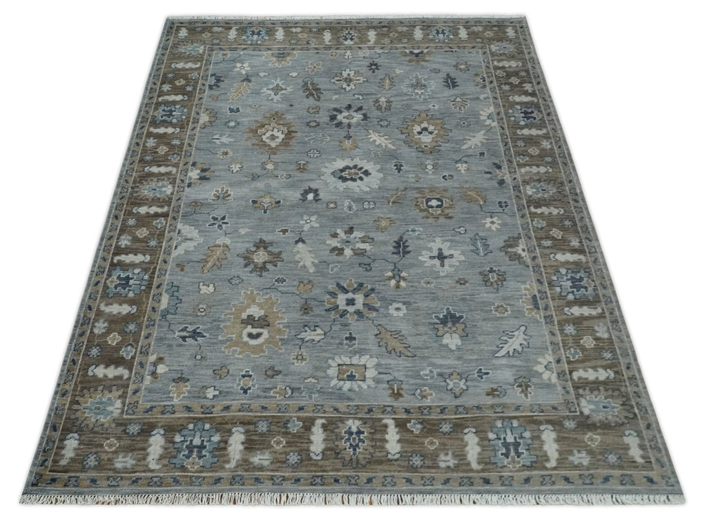 8x10 Traditional Gray and Brown Antique Style Floral Hand knotted Wool Area Rug