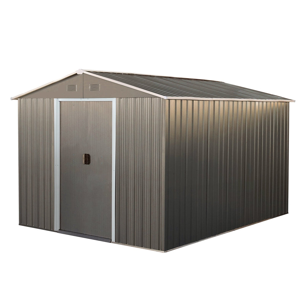 - [Free Giving]Metal Foundation,Anchors,Hooks,Shelf,Locker(padlock),Gloves Easy-build shed made of Electro Galvanized Steel treated for strong corrosion resistance. UV resistant steel panels protect against rot, insects, and extreme weather conditions.