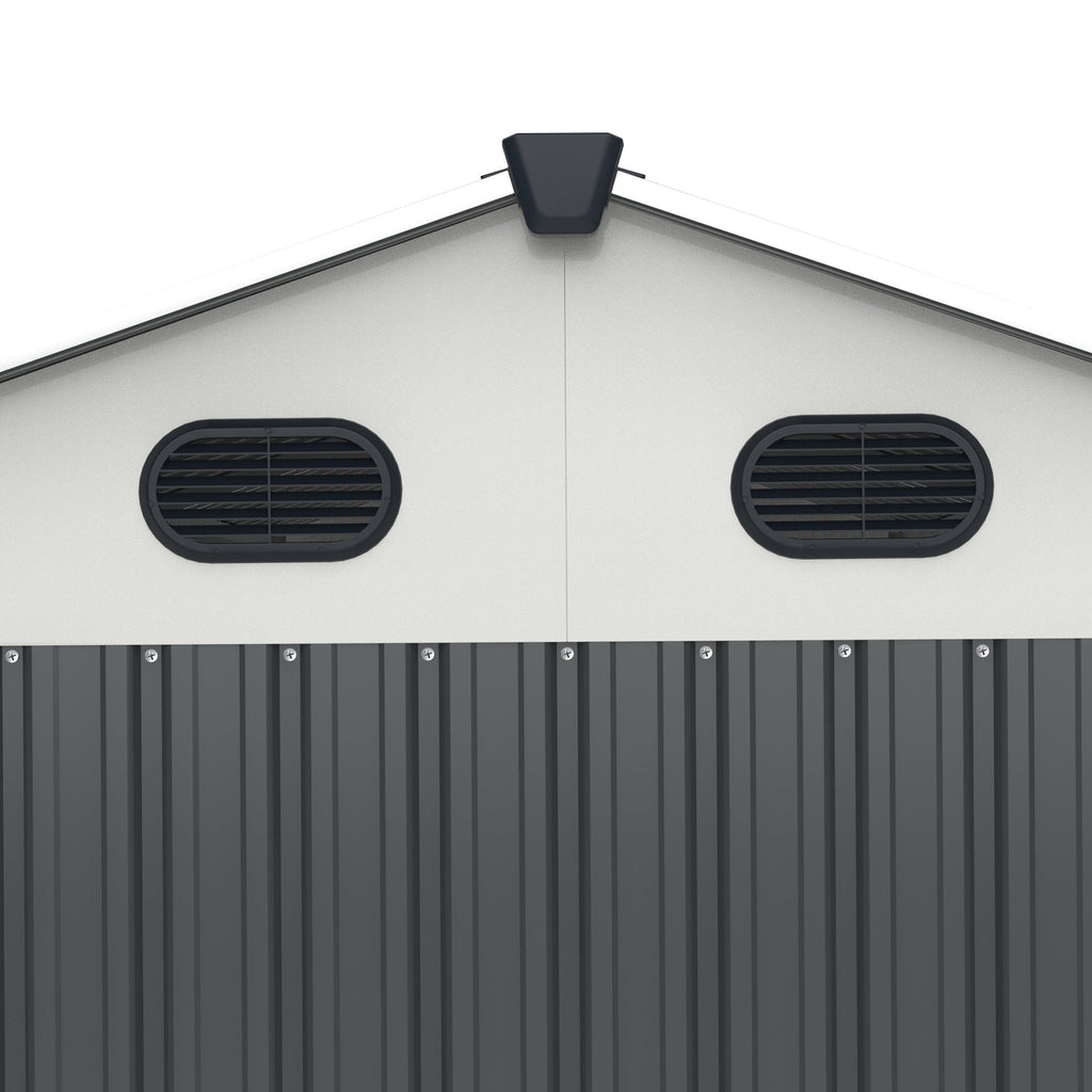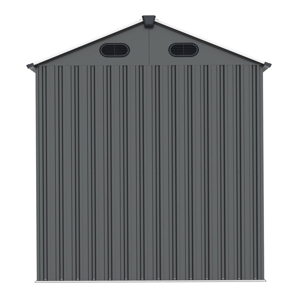 8x6 Ft Metal Outdoor Storage Shed with Window, Floor Base, Air Vents and Double Hinged Door