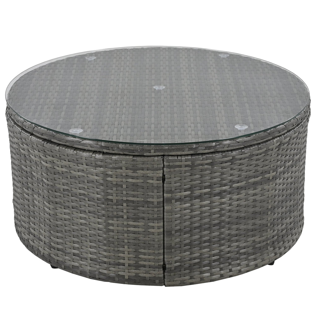 - Center Coffee Table - Highlighted by a robust tempered glass coffee table that adds a sophisticated touch to your patio, this luxury outdoor sofa set ensures you can enjoy your favorite beverage or snack while relaxing outdoors, encouraging convivial gatherings in the comfort of your own garden or patio.