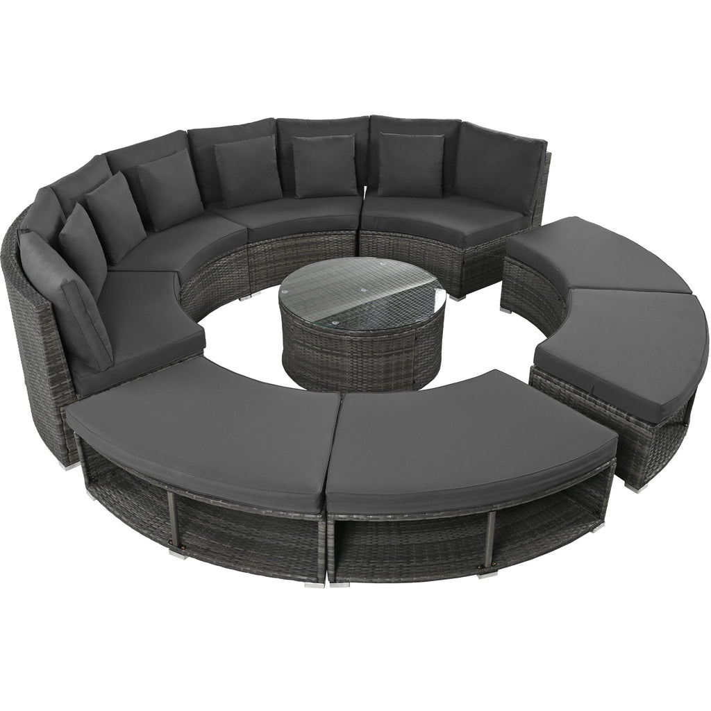 - Stylish Design - The Large Circular Sofa Set is something quite unique. Elegant rattan with low saturation cushions for a refined, textured look, Circular patio furniture is the perfect addition to outdoors.