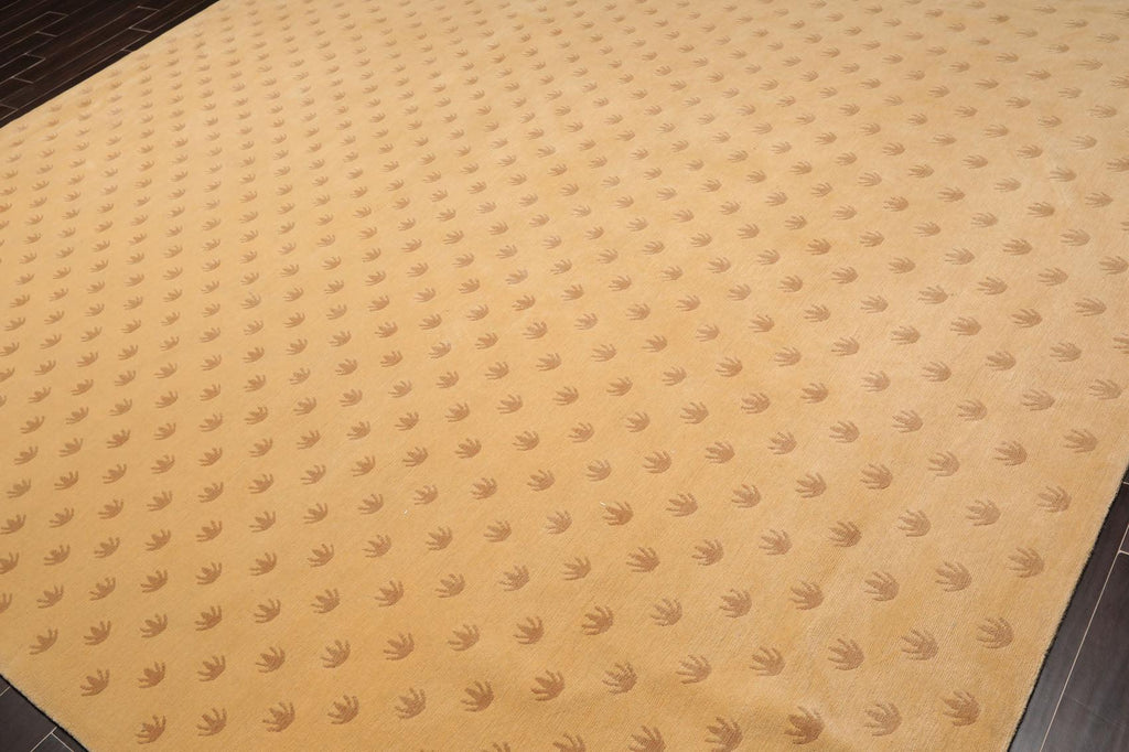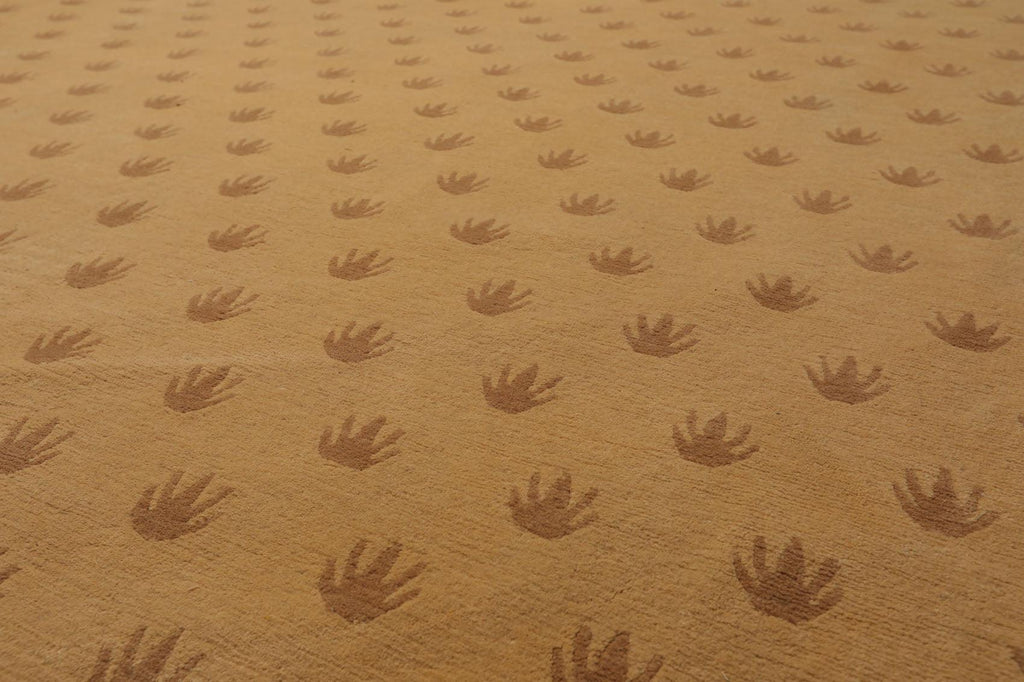 Story Behind the Art For centuries Tibetans have used rugs for decorative and functional purposes, drawing upon geometric patterns, auspicious symbols, real and mythical animals, and natural imagery to create beautiful, colorful designs. But it was only after 1959 with the Chinese invasion of Tibet and the growth of Tibetan diaspora in Nepal and Tibet that Tibetan rug weaving underwent a crucial commercial revival. In the 1970s, Tibetan rugs rose to prominence and Nepalese artisans, drafted in to keep up with the rising demand, became the mainstay of the Tibetan rug weaving traditions. While either Turkish knot or the Persian knot (Senneh knot) is used to create the pile or depth of a rug in most of Asia, the Tibetan rug utilizes a slit-loop technique called the Tibetan knot. Here rugs are woven by wrapping a continues length of yarn over a rod laid across the warps stretched on the loom. When the rod has been wrapped for its entire length, a knife is slid along the rod, cutting the wrapped yarn into two rows of pile tufts. The resultant pile is a wonderful mix of depth, texture and richness. Traditional Tibetan rug motifs generally reflect the importance of Buddhist religion in Tibetan art and culture. Many design elements of Chinese origin like the phoenix, dragon, and lotus symbols alongside motifs from Chinese decorative tradition have also been assimilated in the rug repertoire of this region. In modern times, designs featured in Tibetan, Nepalese rugs (those woven by Tibetan refugees in Nepal) and Indo-Tibetans (woven in India) range from Westernized adaptations of traditional Tibetan motifs (such as branching floral designs and snow lions) to a large mixture of foreign and modern free-form patterns.