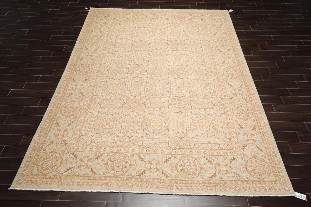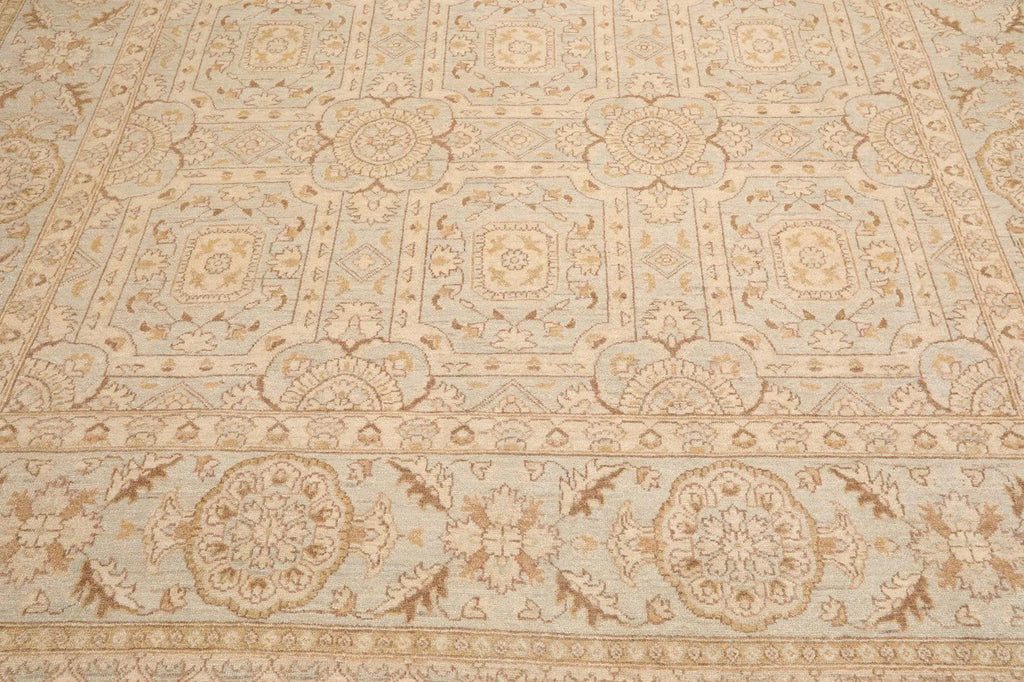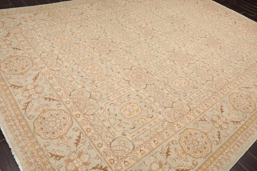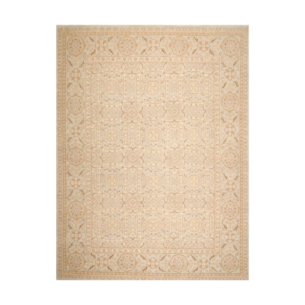 Story Behind the Art: Hand-knotted rugs are Pakistan's second-largest cottage and small industry that began as early as the 11th century under the Mughal rule. The craftsmen have the capacity to produce any type of rug using all the popular motifs of guls, medallions, paisleys (botehs), traceries, and geometric designs in various combinations. While the "stone washes" are used to fade and soften colors, the Peshawar style is characterized by a thinly sheered pile, large print designs, and most predominantly, their antique ivory and sometimes golden tones.
